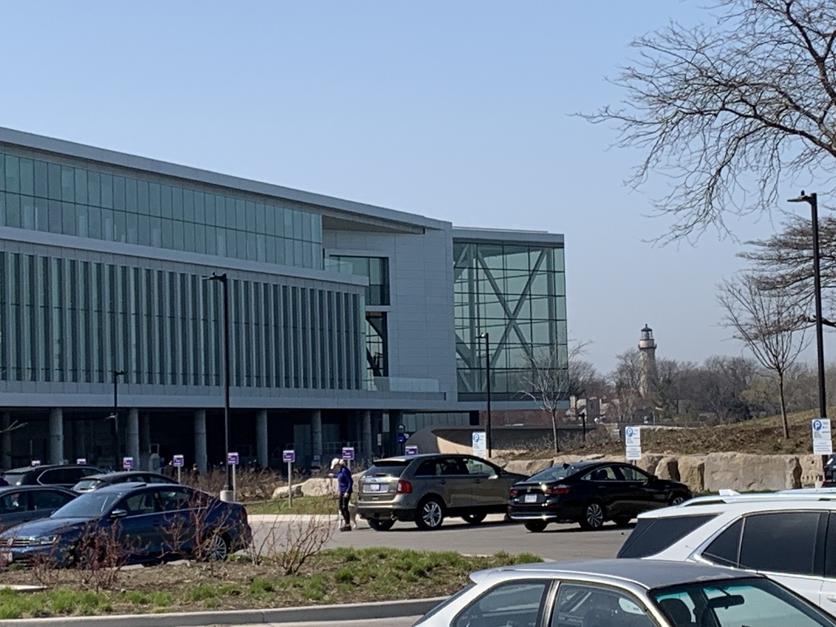 New atheletic center with Gross Point Lighthouse