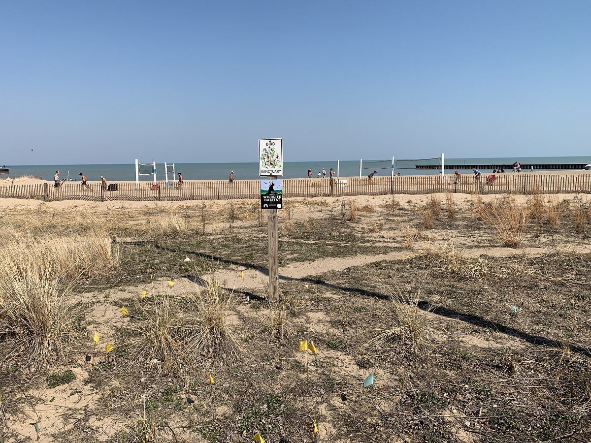 Bird sanctuary and vollyball on Clark Street Beach