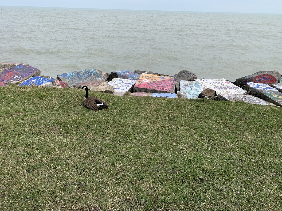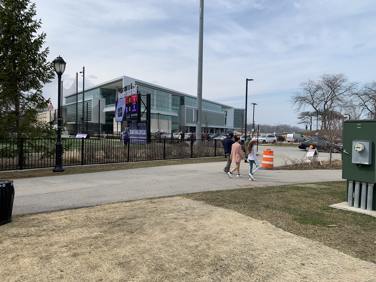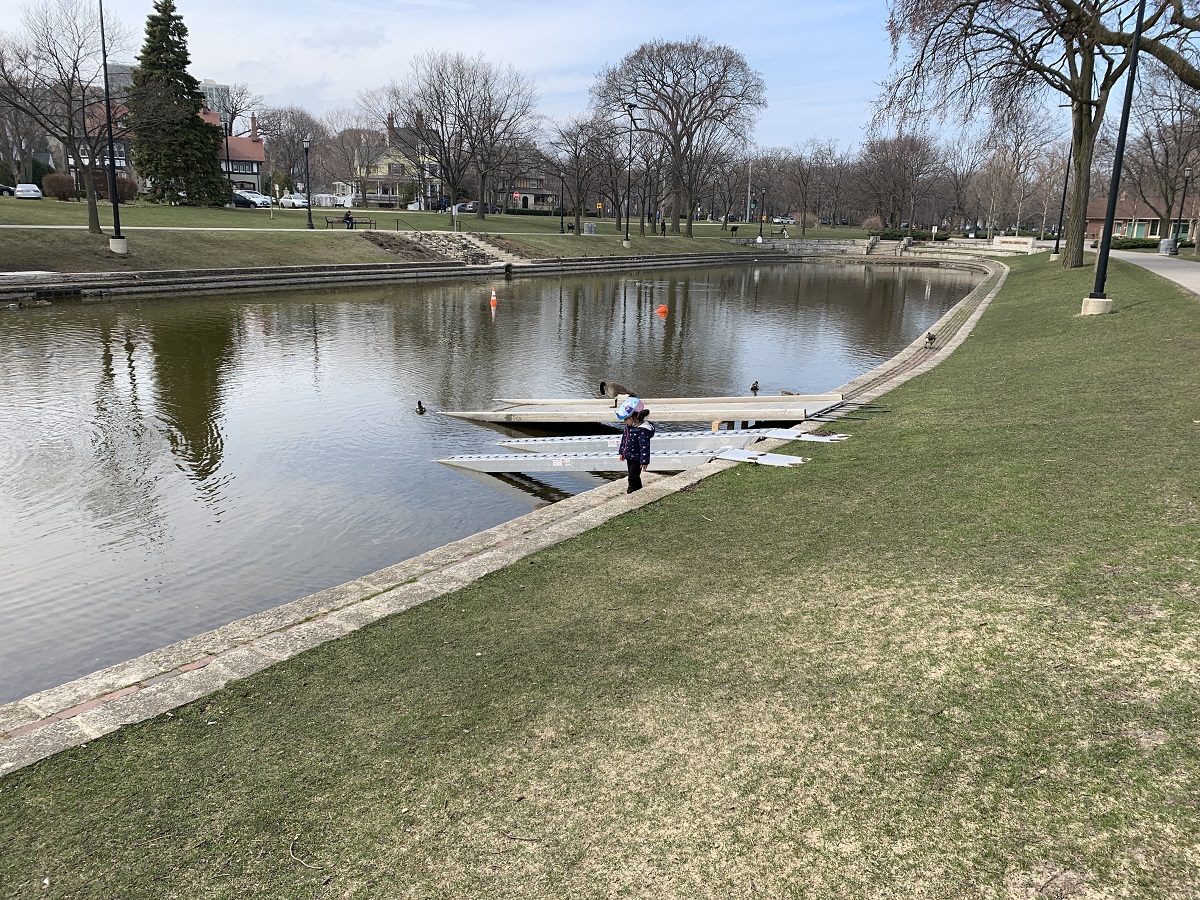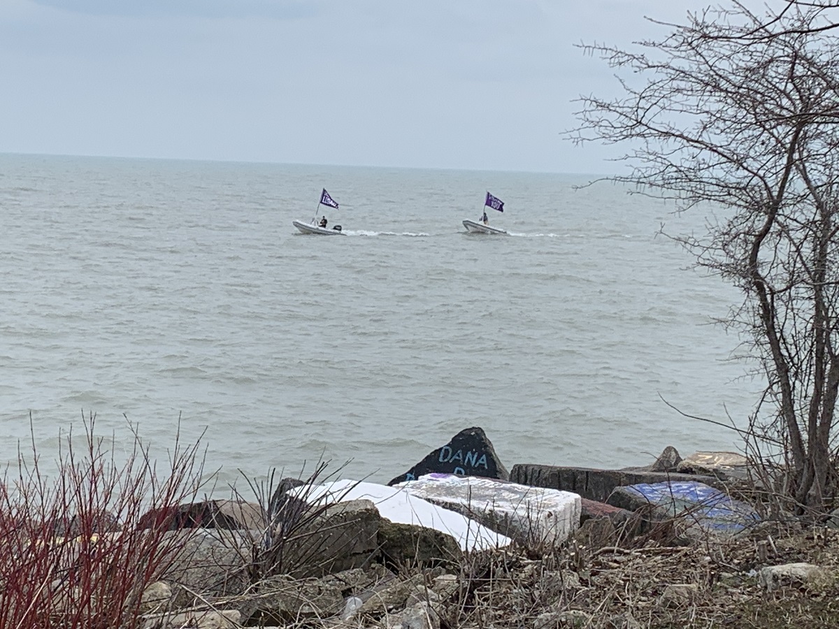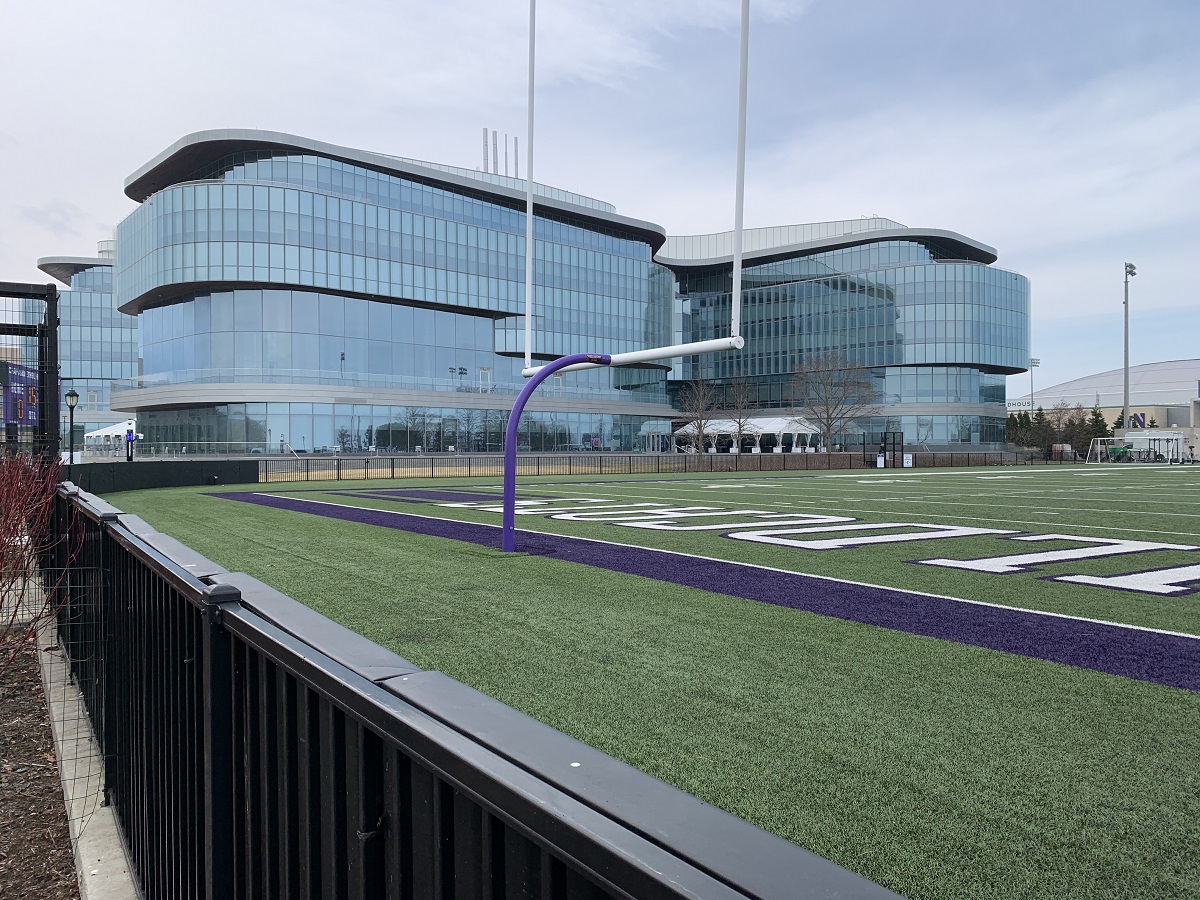View to the NW from the NE corner of landfill showing Gross Point Lighthouse and top tip of Baha'i Temple