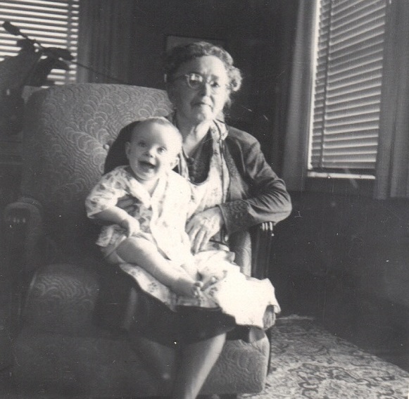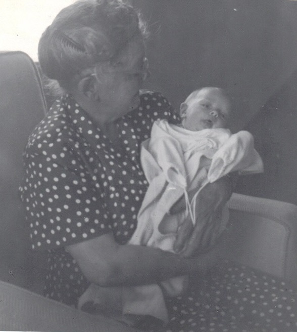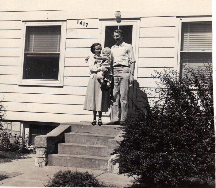 Marjorie (Mom), Andy, and Walter (Dad) at 1417 LeGore Lane -- 1952