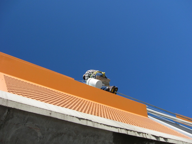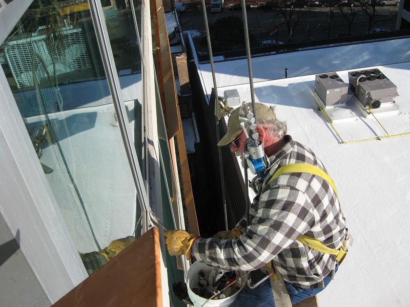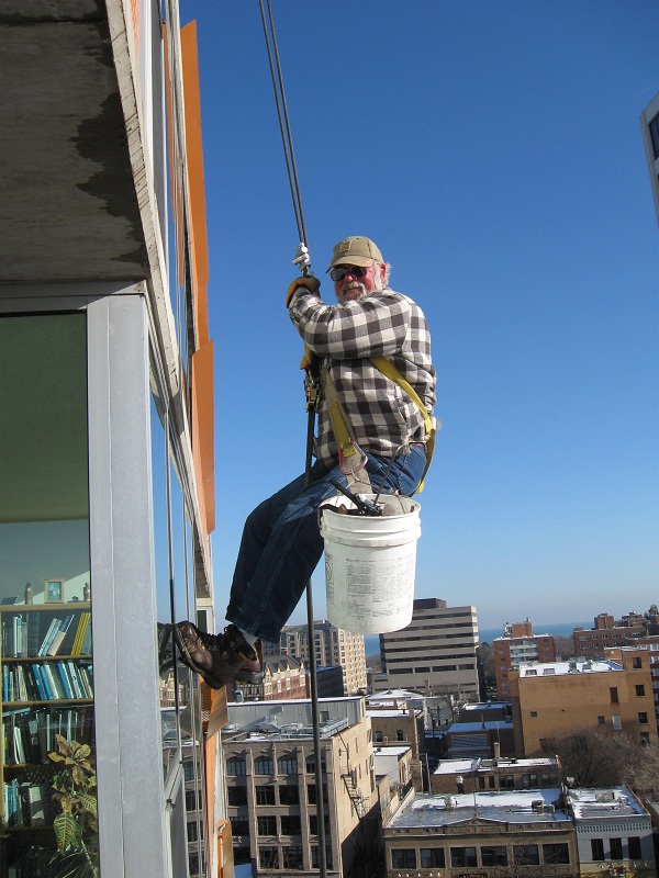 Jim Hillard of Holton Brothers coming down rope from roof to my unit #1108