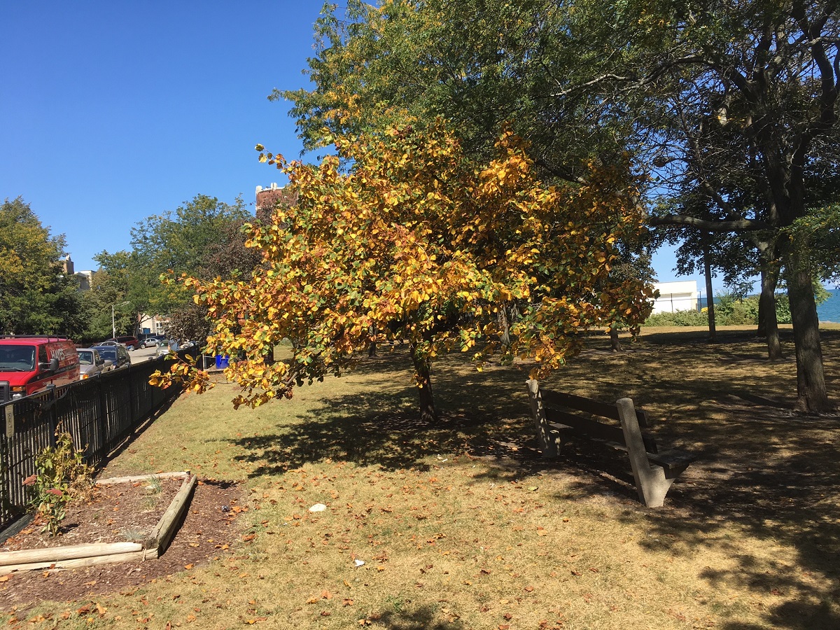 More yellow trees with Lake Michigan at Rogers Park