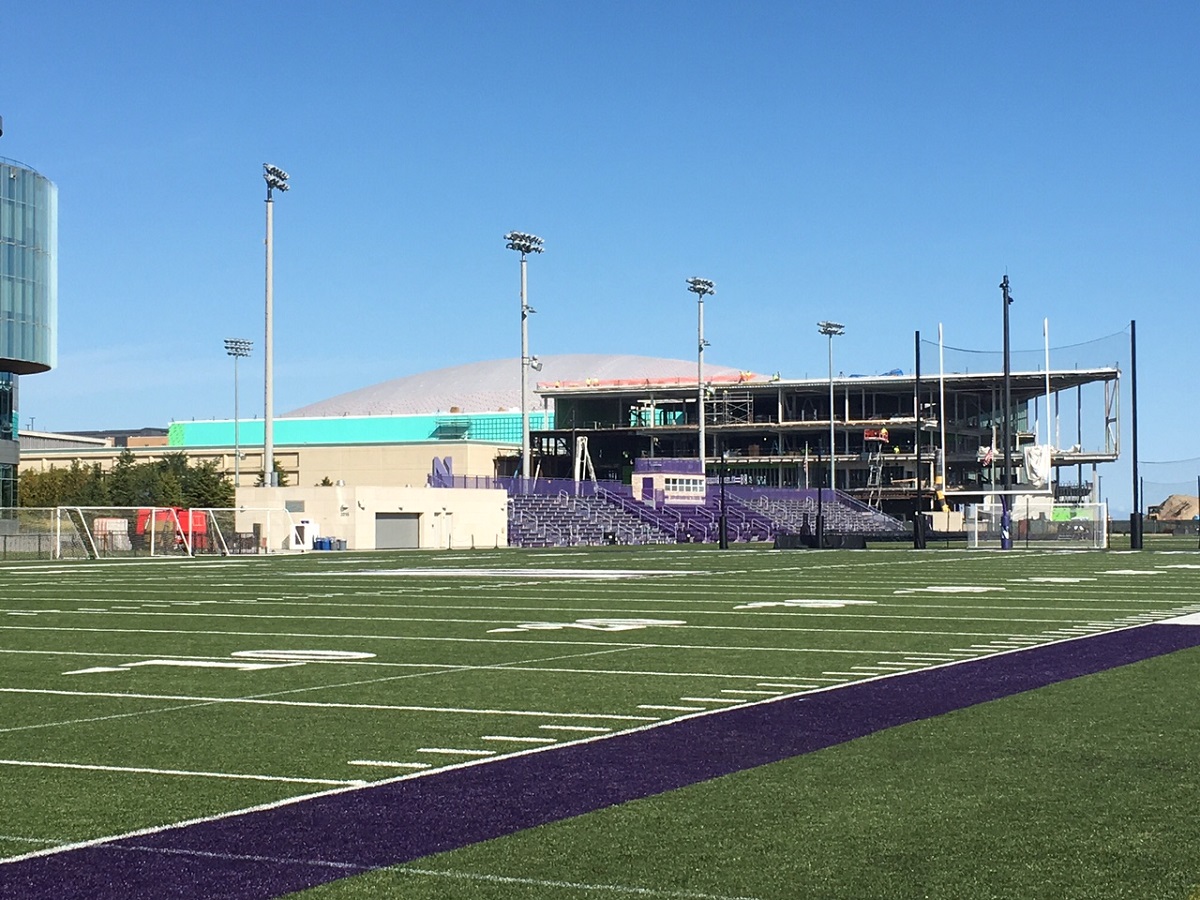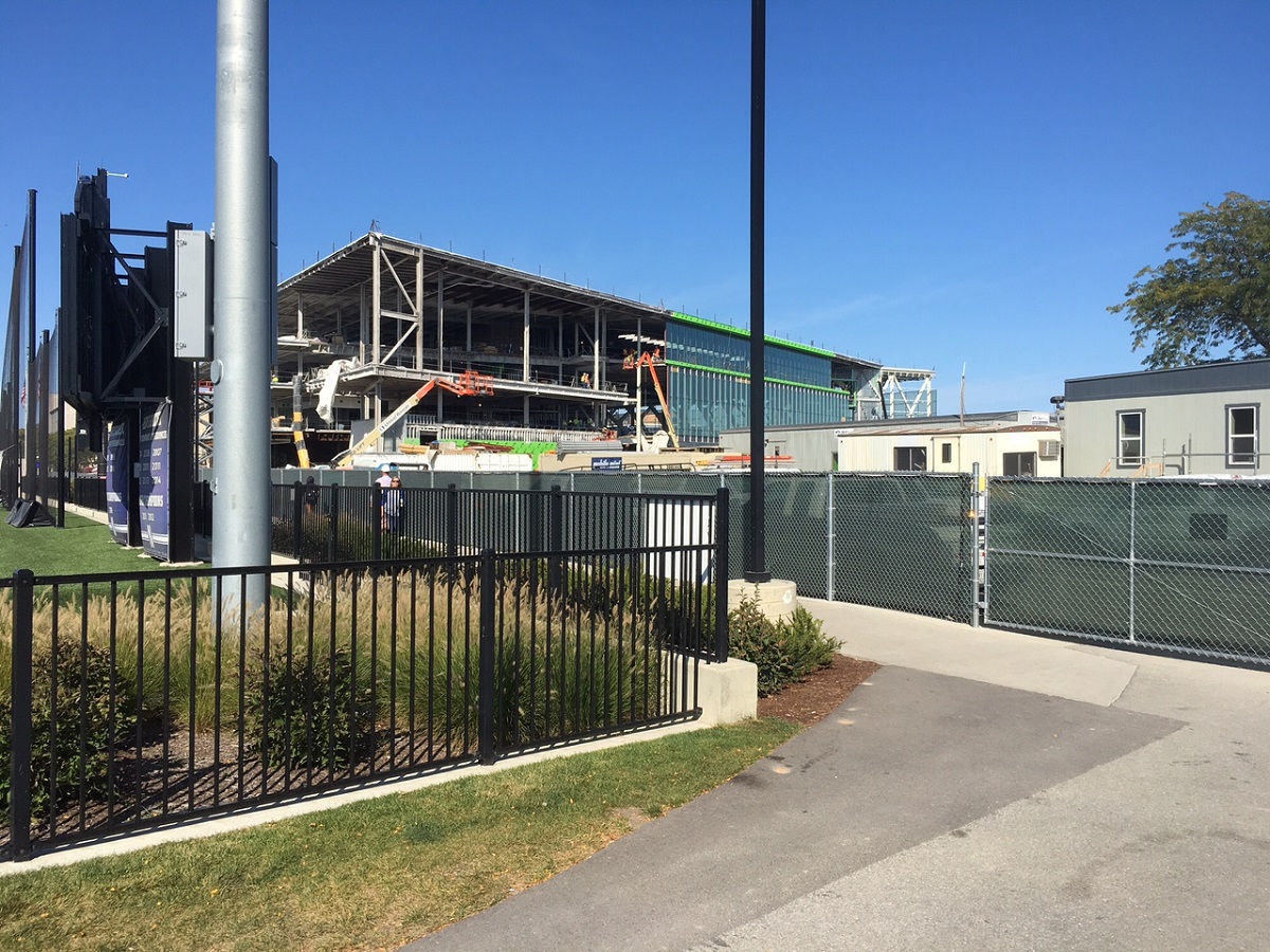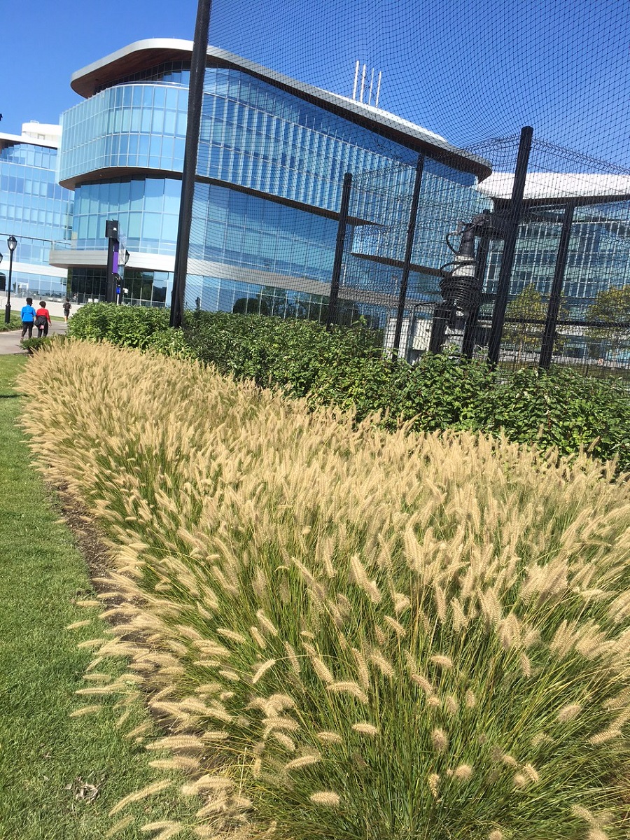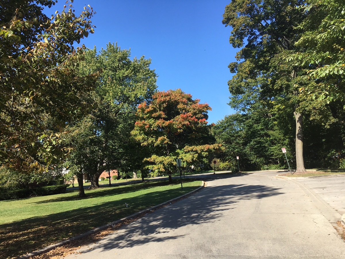 Arts Center, sign for lighthouse, and lighthouse through the tree