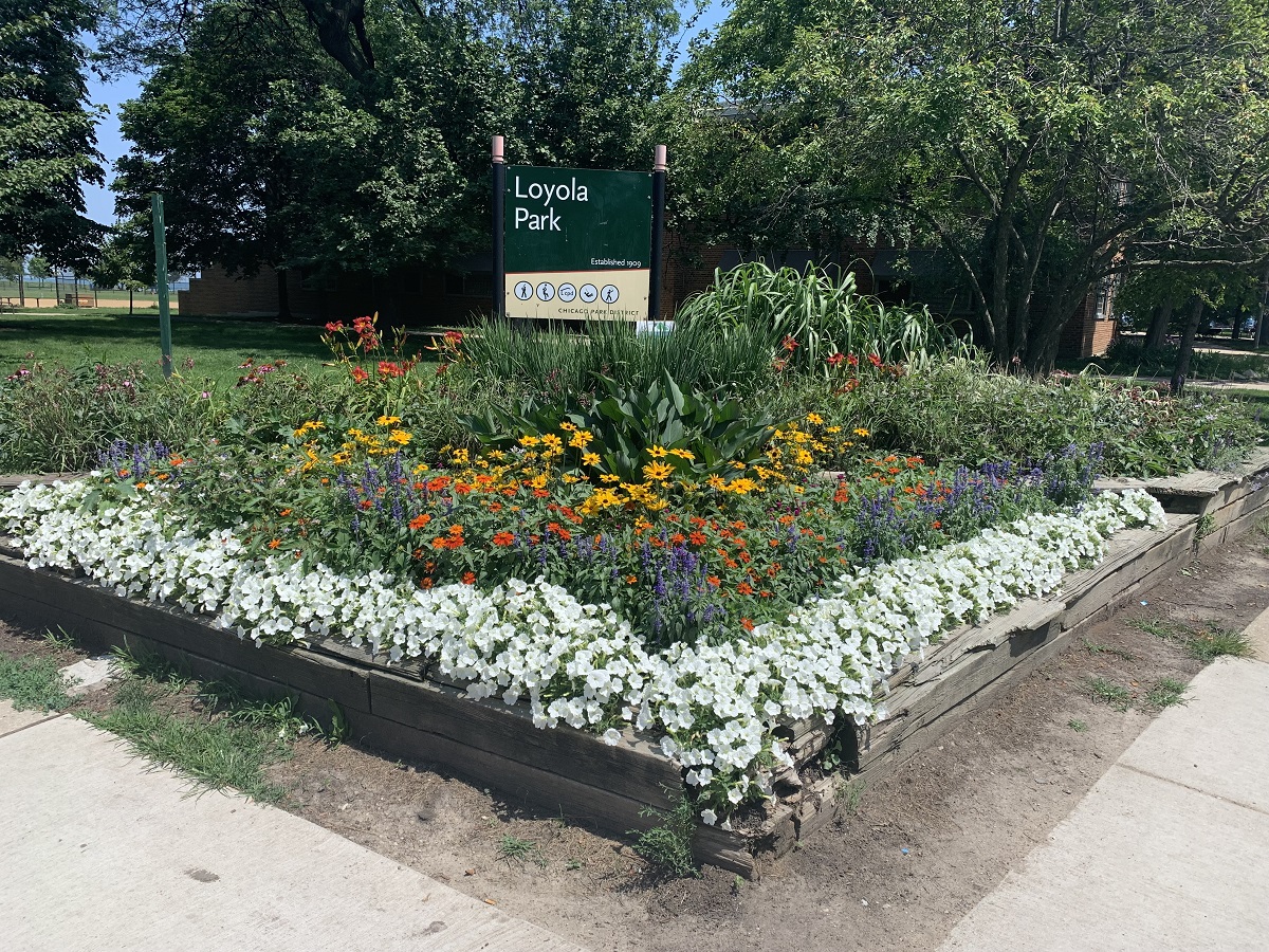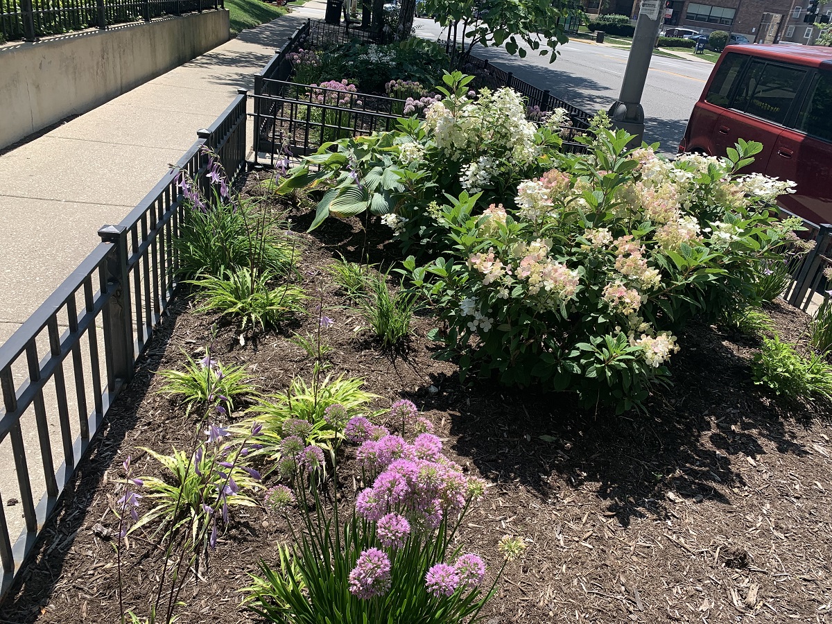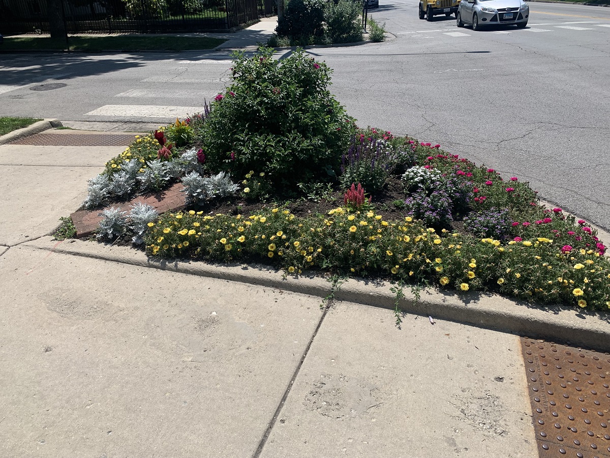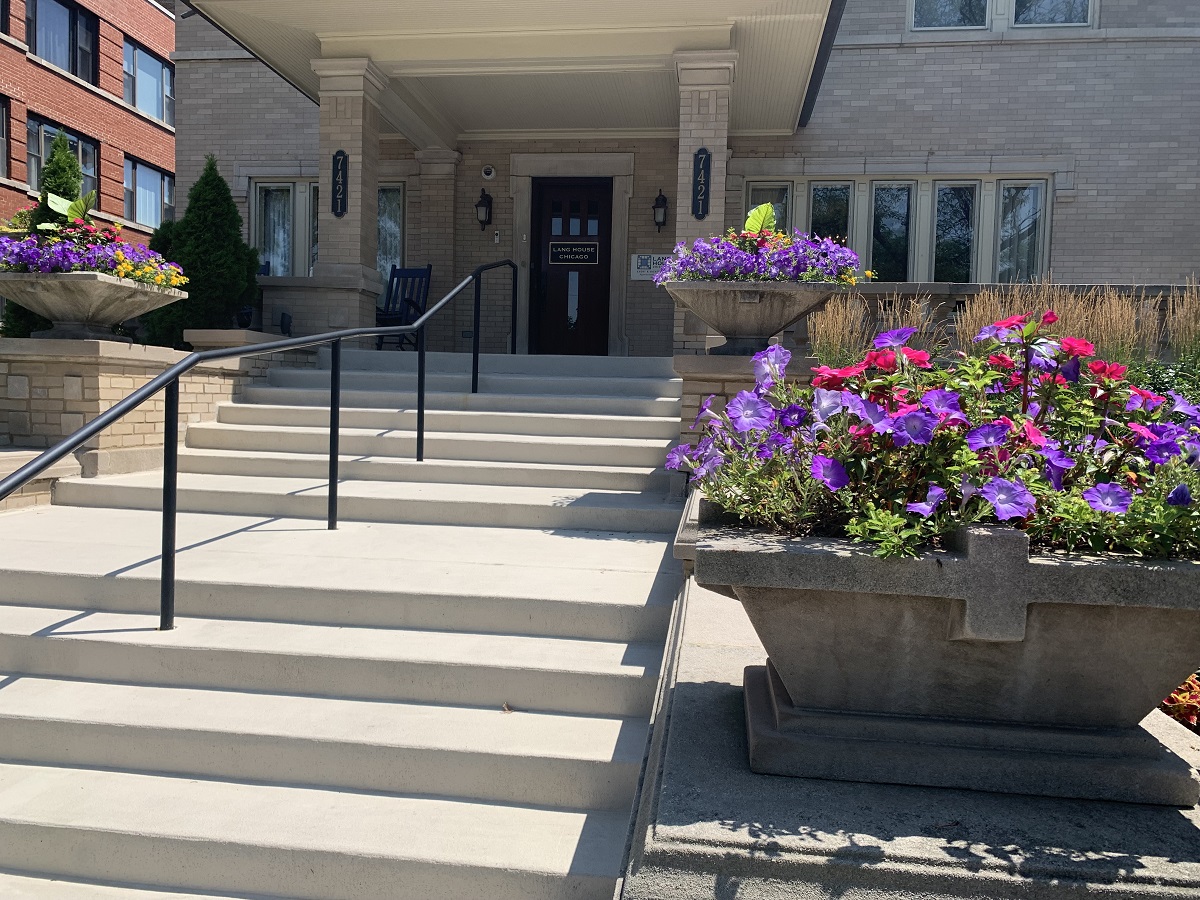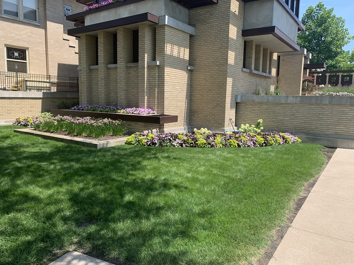 Flowers by the Emil Bach House by Frank Lloyd Wright (just south of the Lang House)