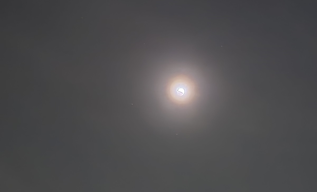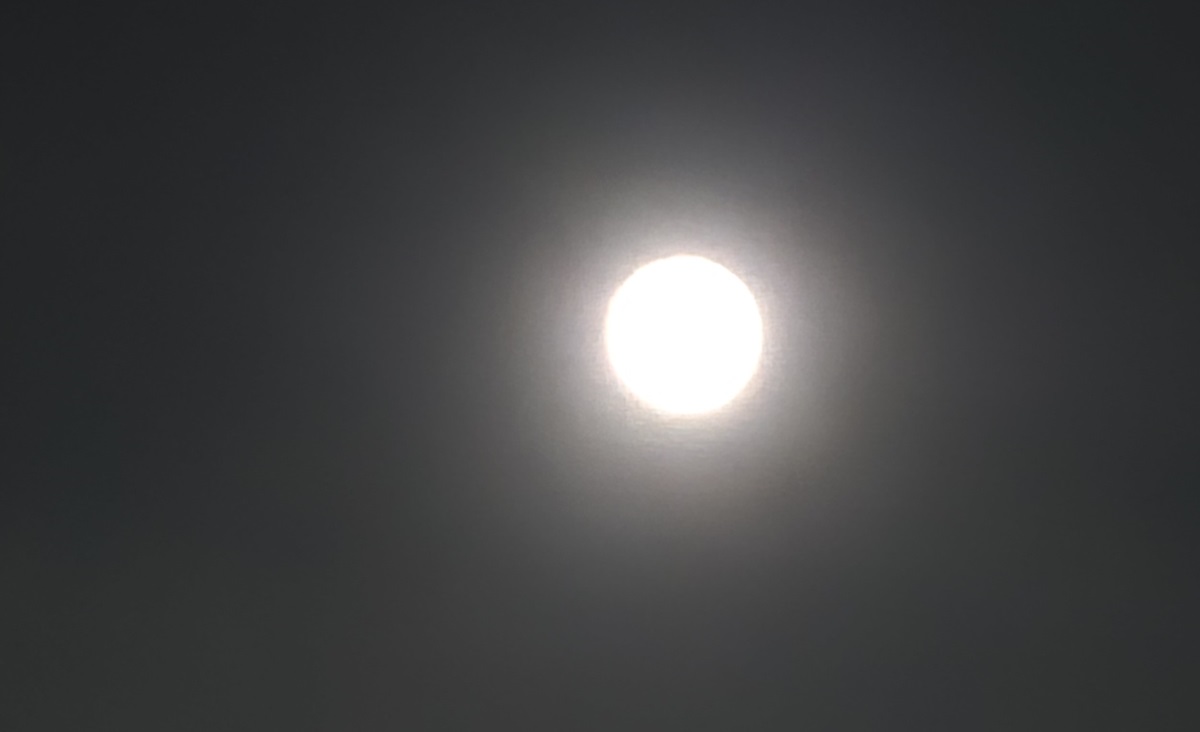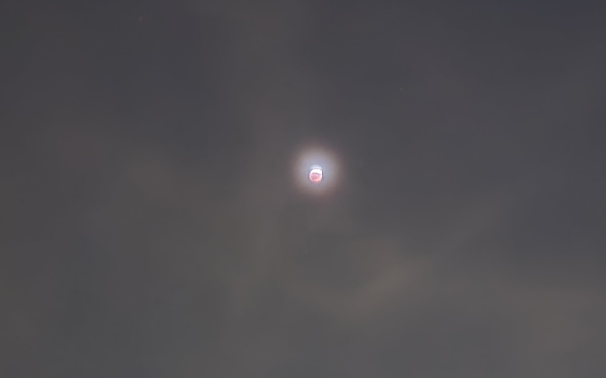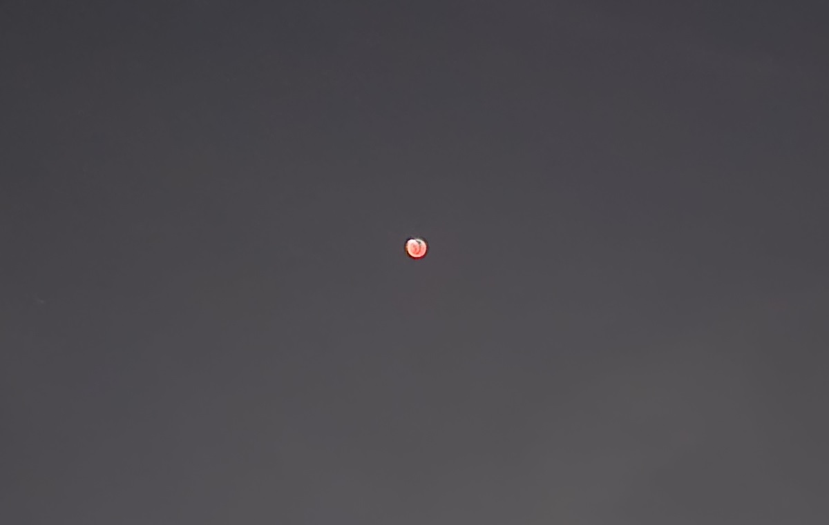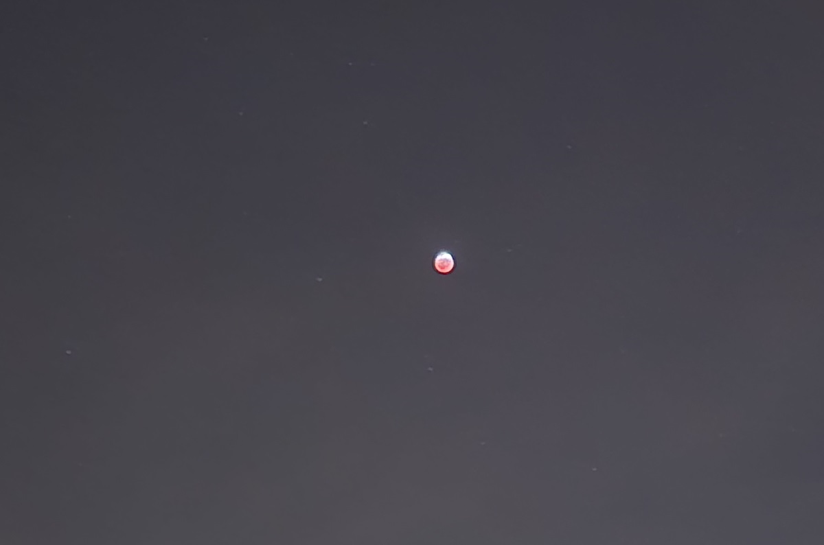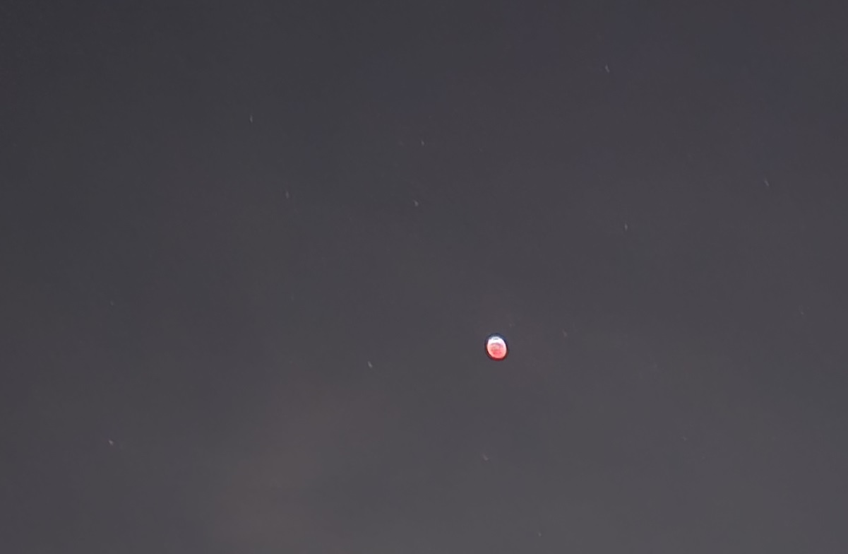 Most of moon pink -- stars hidden due to haze and/or my moving the camera