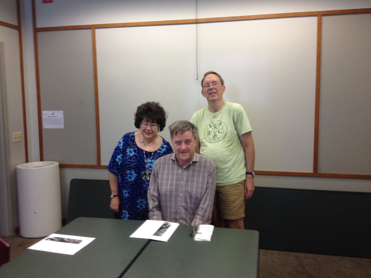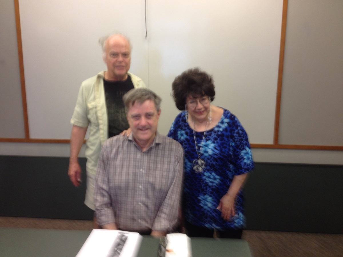 Larry Johnson, Lewis Walker, and Marcia Kemp in small discussion room for monthly Christian Science discussion