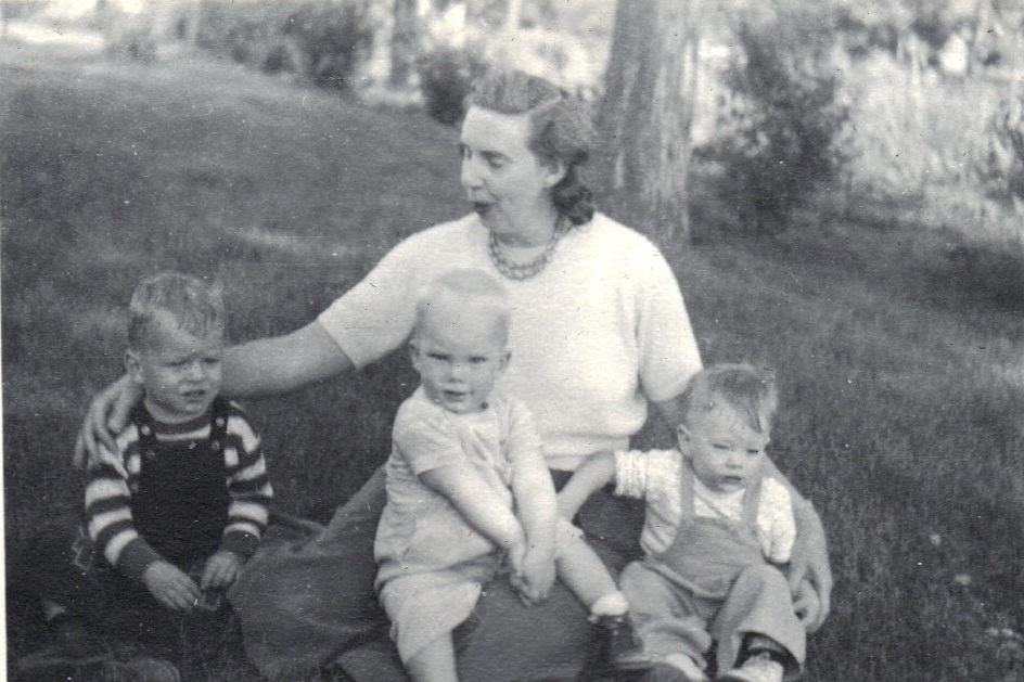 Marjorie with [?], Andy, and Jim Bagley -- fall, 1951
