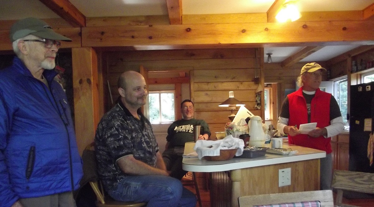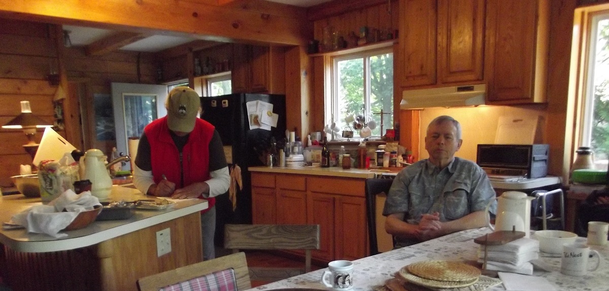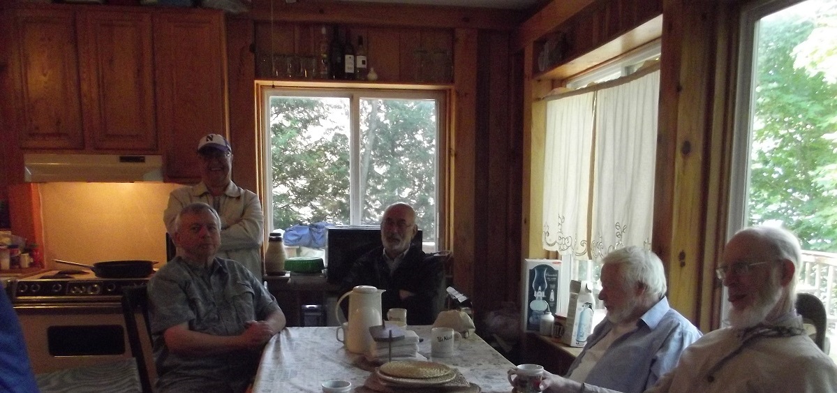 Dave, Woody, Lucus, and Doug eating Woody's excellent eggs with mushrooms