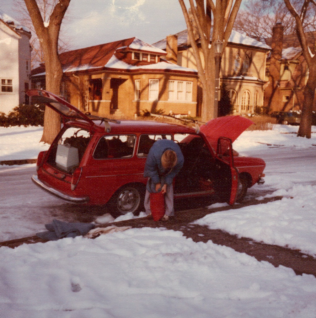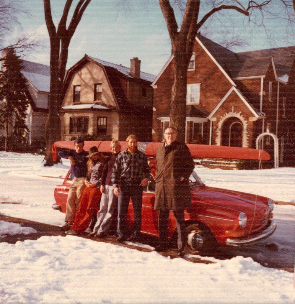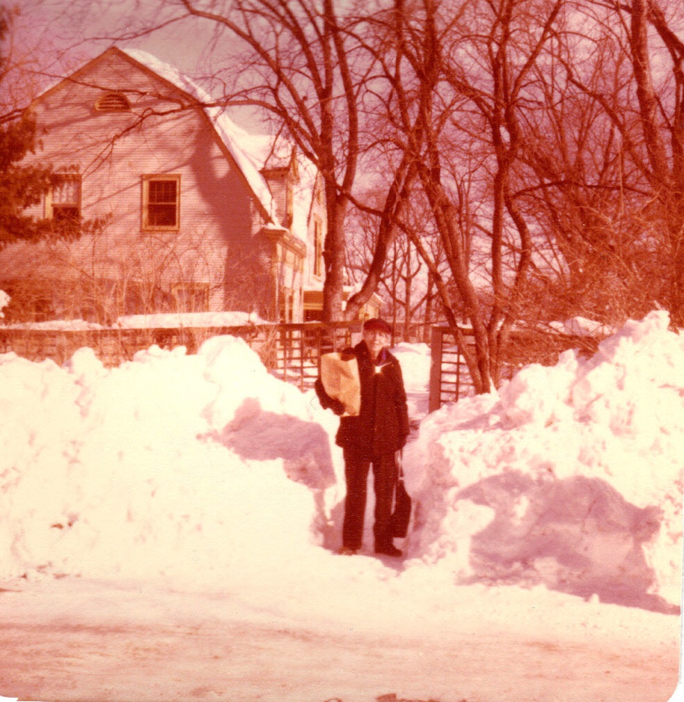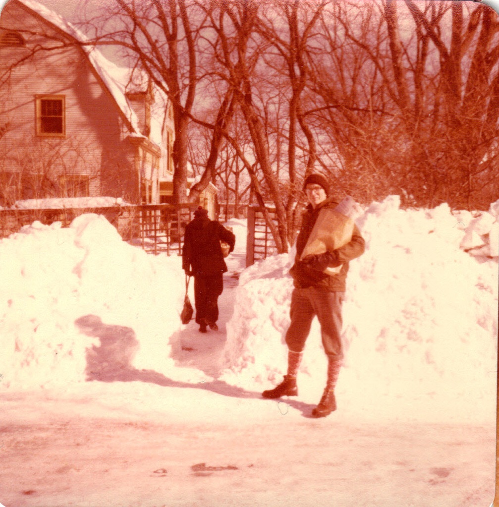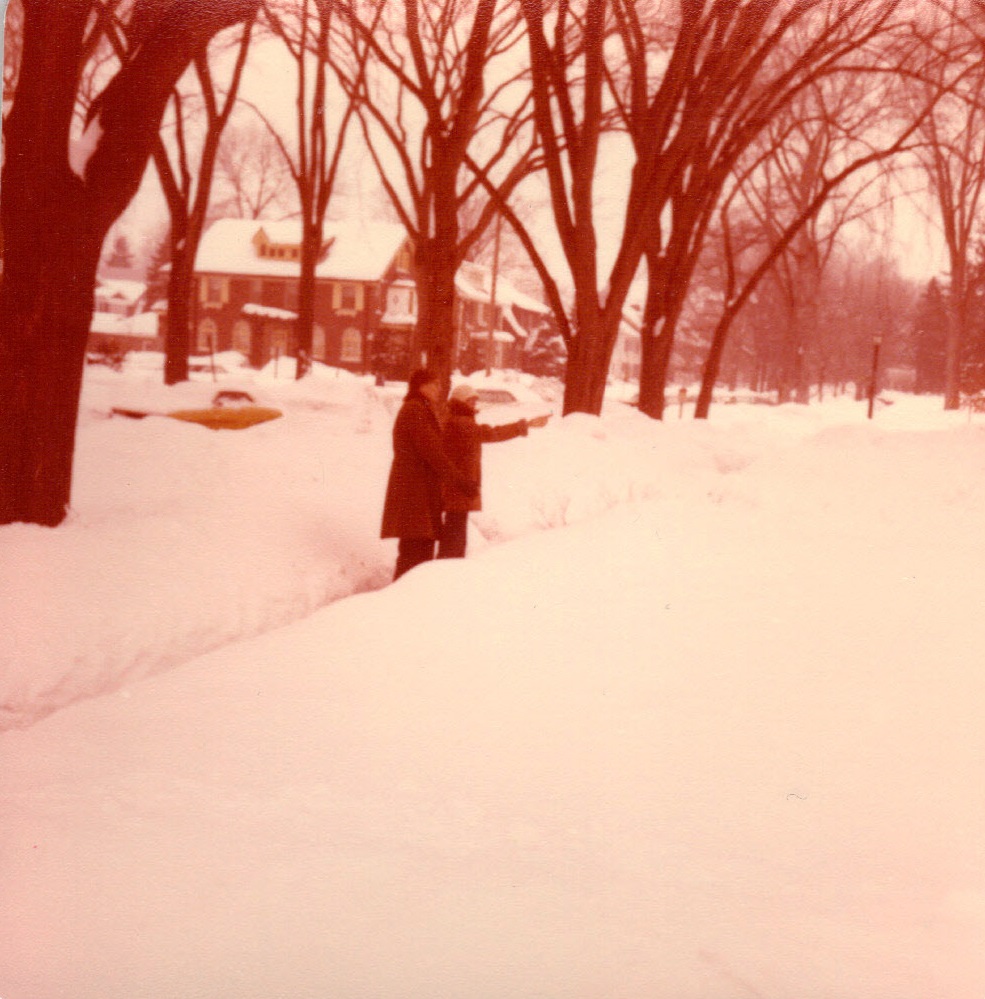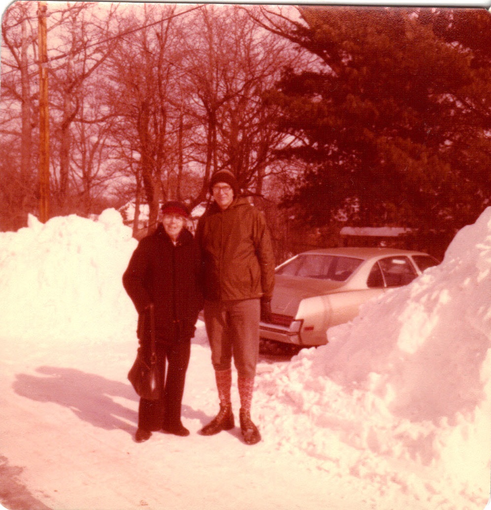 Friend, Dorothy, Carol, another friend, and Dad on Garrison in snow