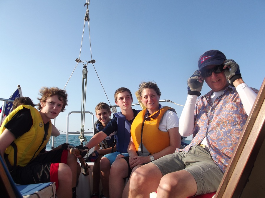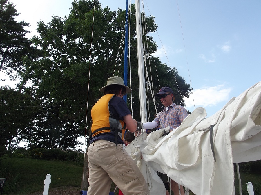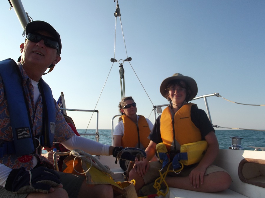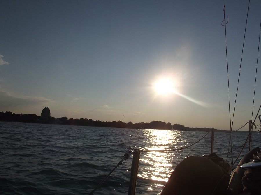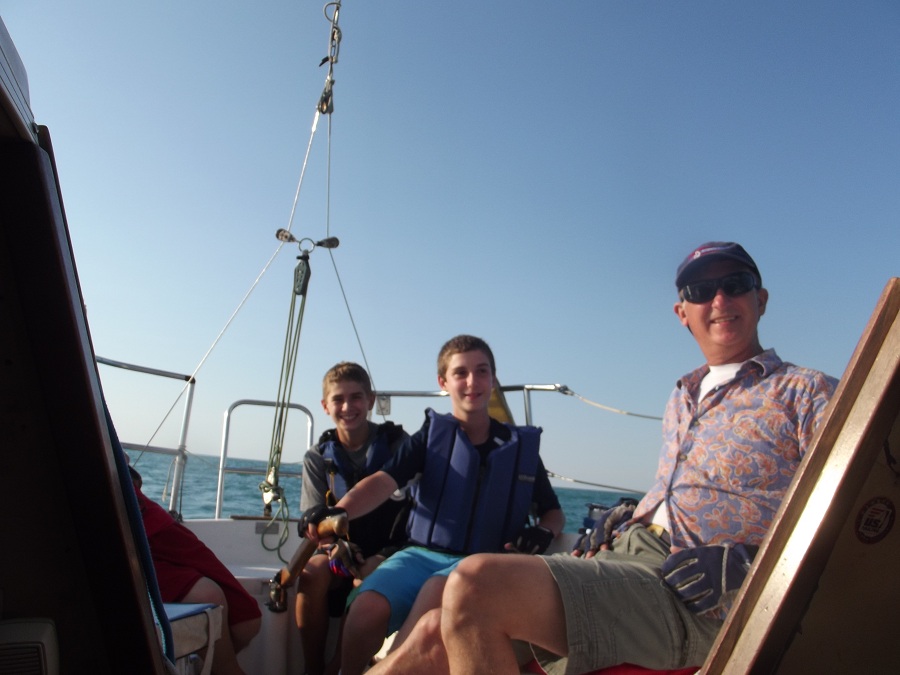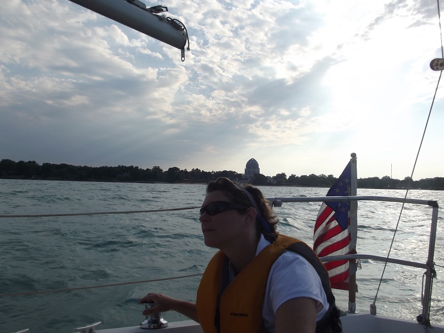 Two scouts on foredeck as we head south toward downtown Evanston and Chicago