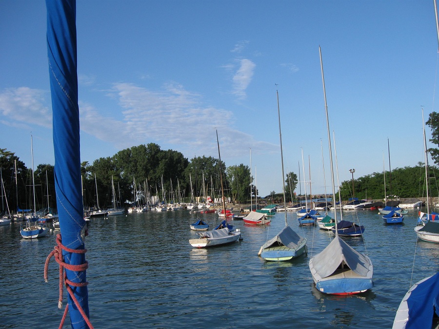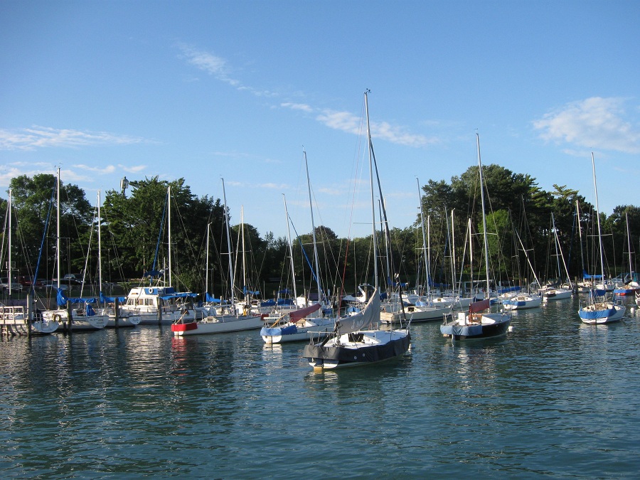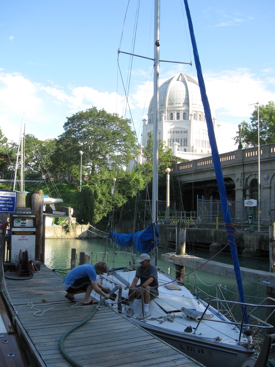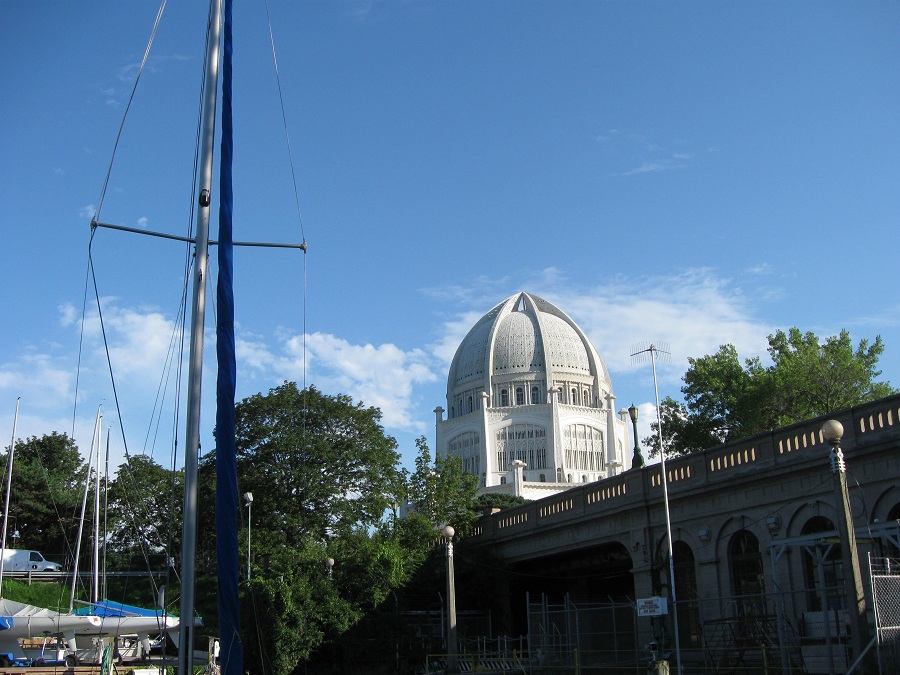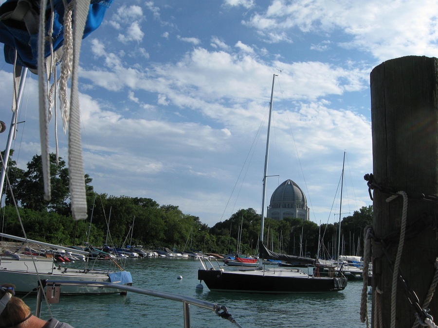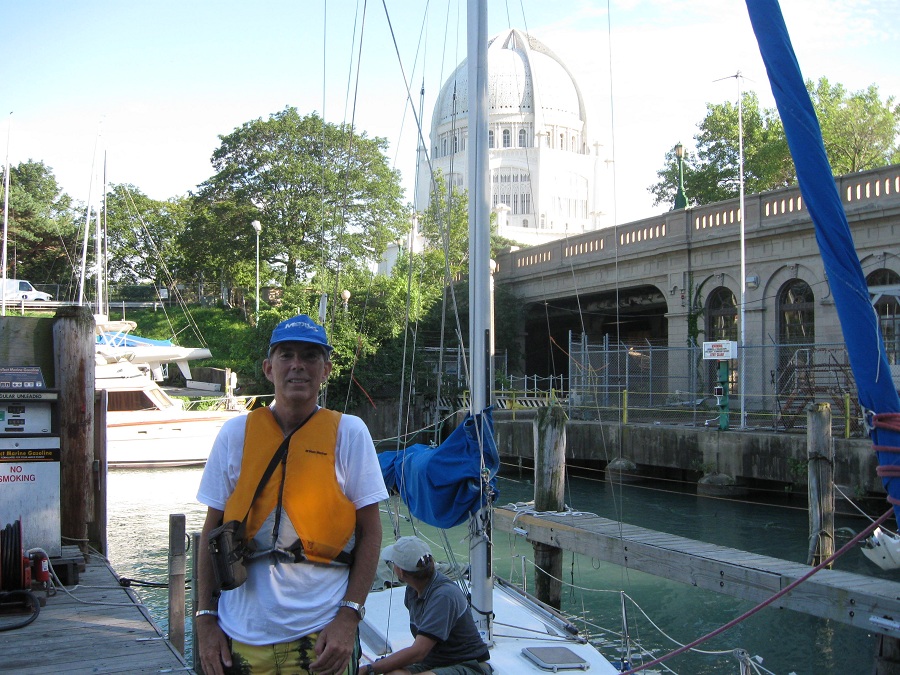 Wilmette harbor staff, Bill on Misty Winds and Baha'i Temple