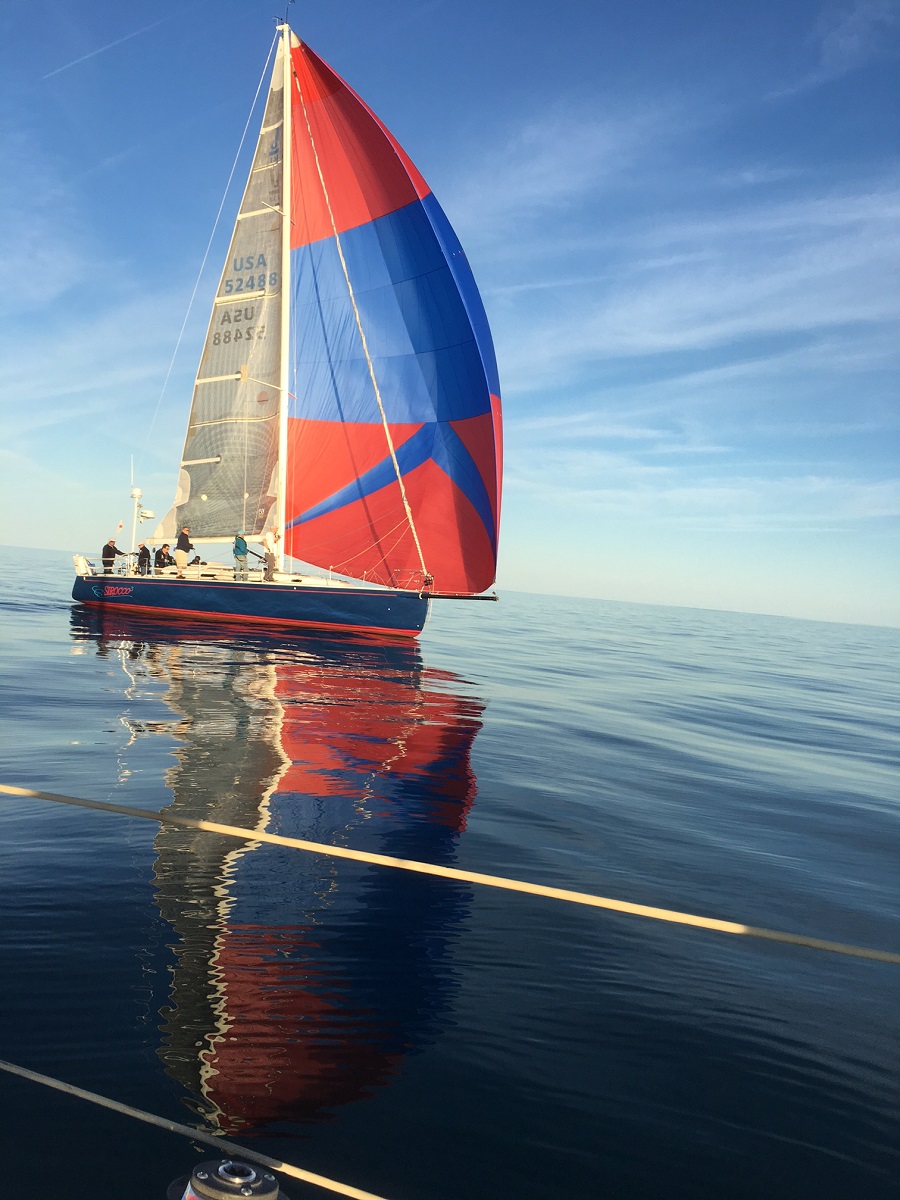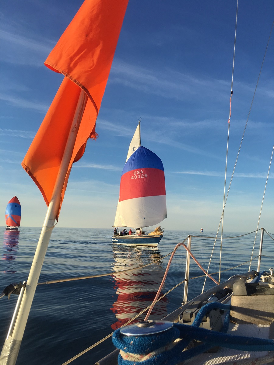 Other boats approaching with our orange flag