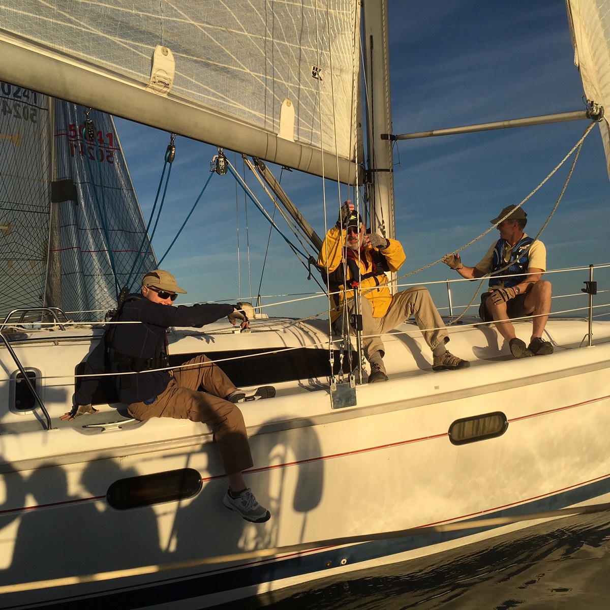Janusz, Anna, Ted, and Bill -- picking up the racing bouys and their anchors