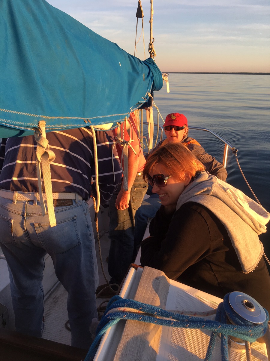 Another near line -- for each boat crossing, Janusz honked the horn, Anna read the time, Ted recorded it, and Margaret took several photos