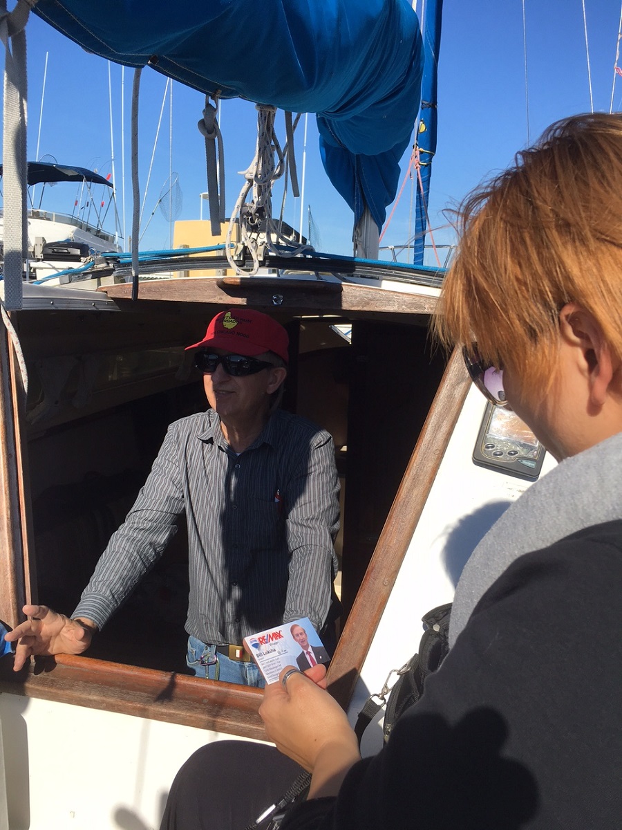 Regular committee boat with cover off its disfunctional engine at Larsen Marine