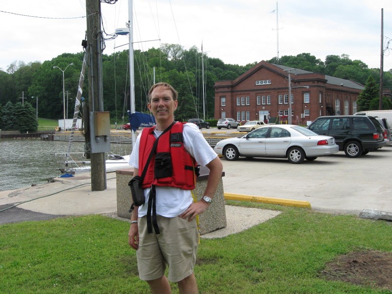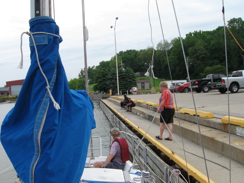 Dale pulling us back after sail (in blue cover) has been mounted