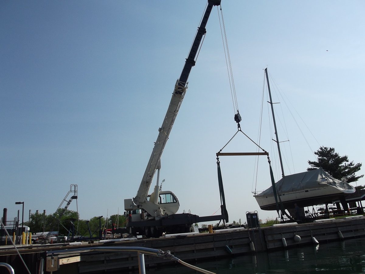 Large crane for lifting boats into water