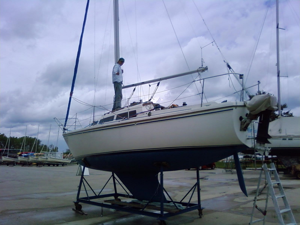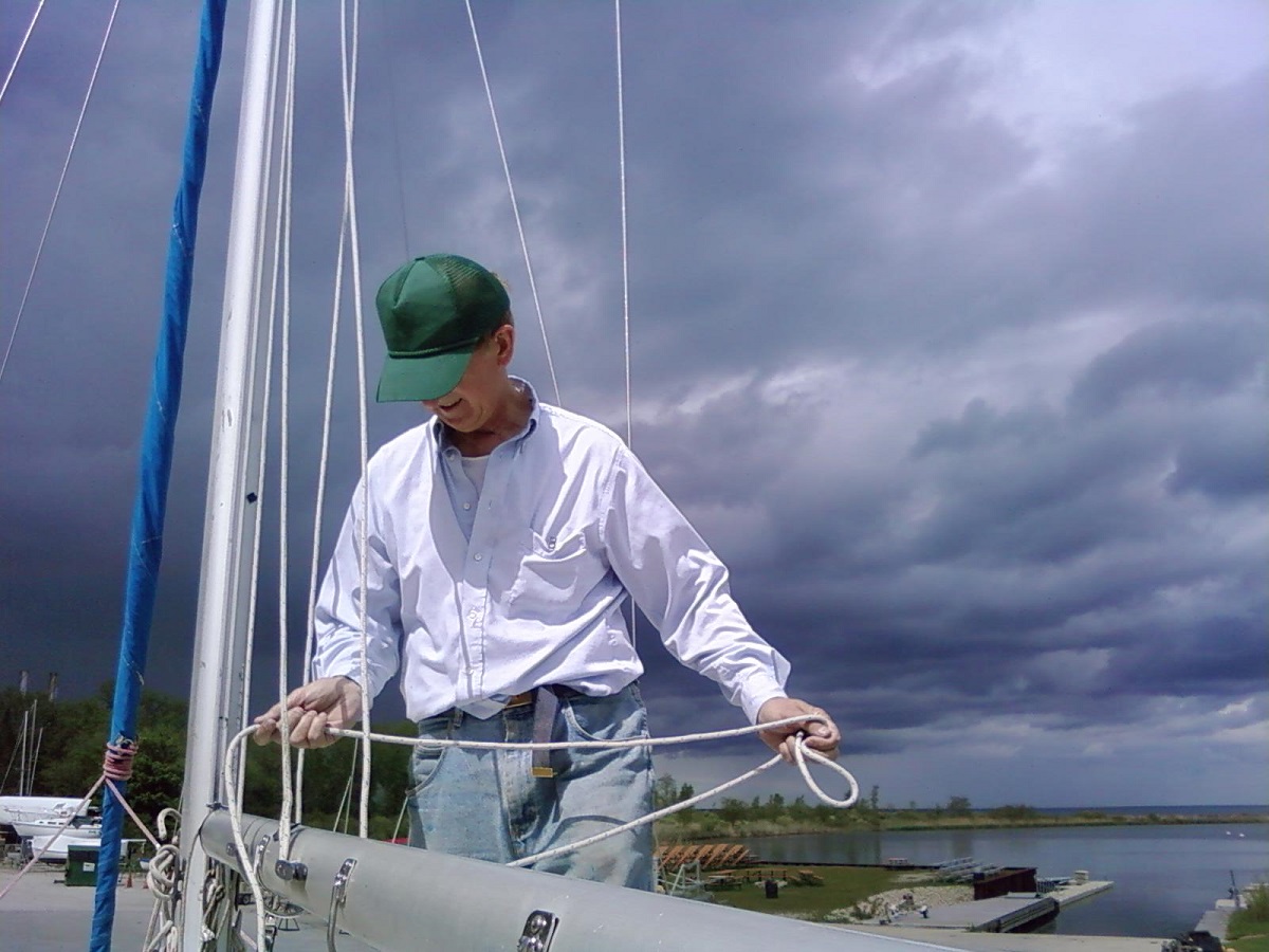 Bill on Misty Winds after we had properly furled the jib