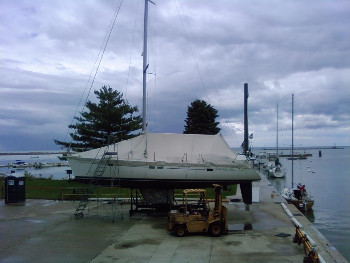 Covered sailboat to the east of us, Lake Michigan, and Great Lakes Marina