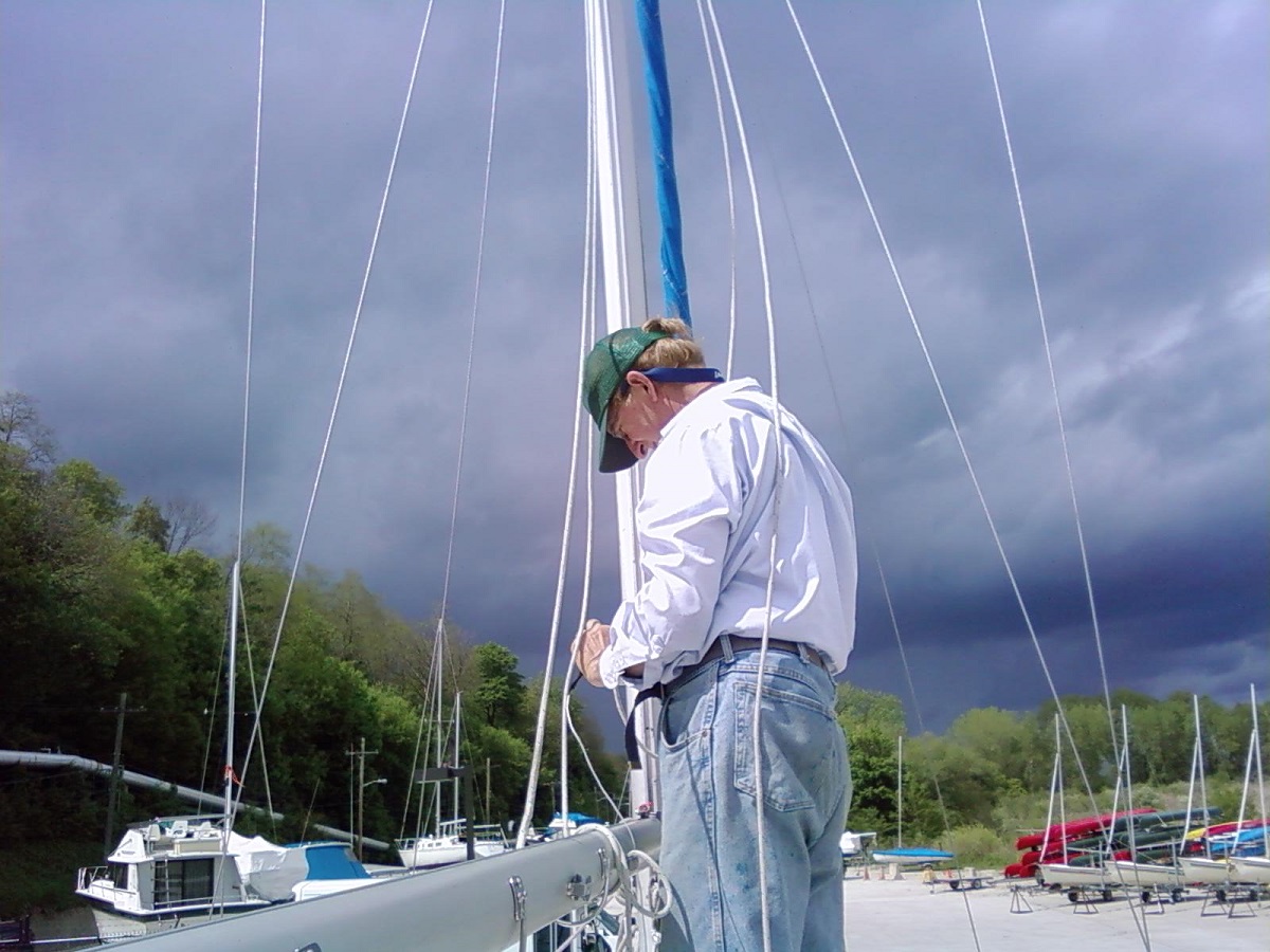 Bill working at the mast