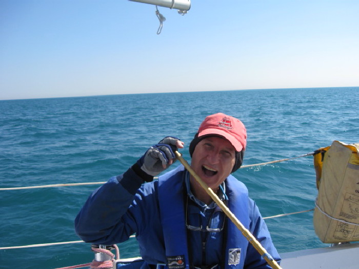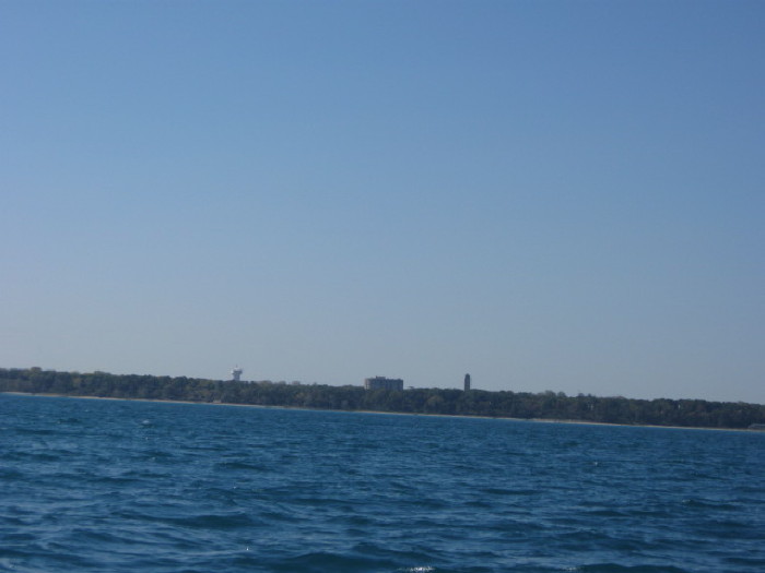 Andy steering with Highwood water tower and Ft. Sheridan showing ahead to right