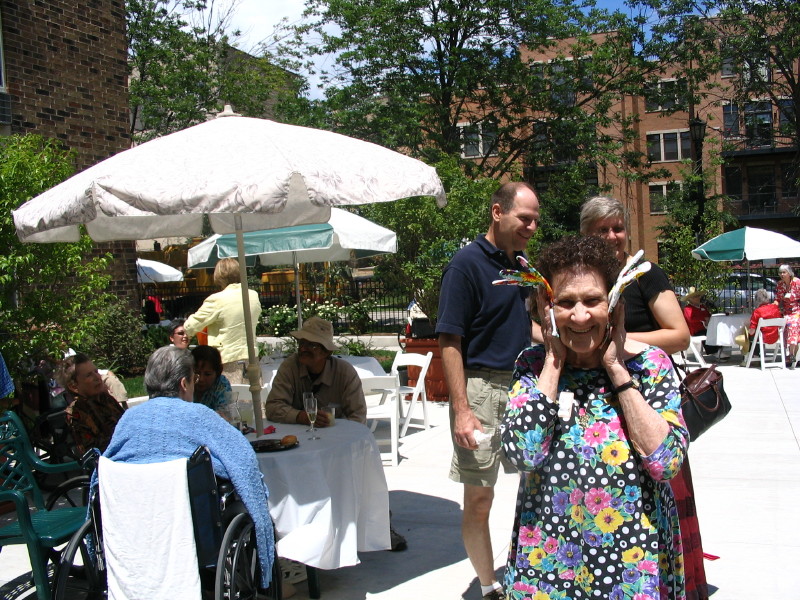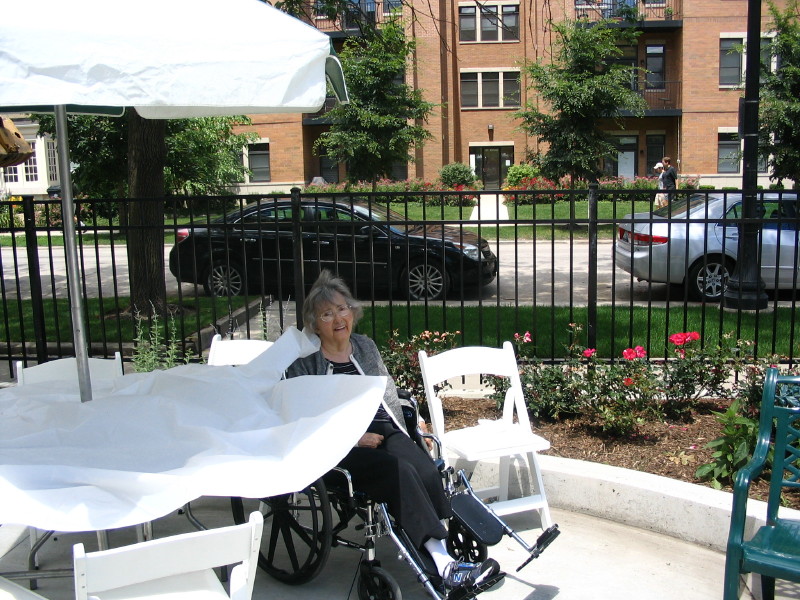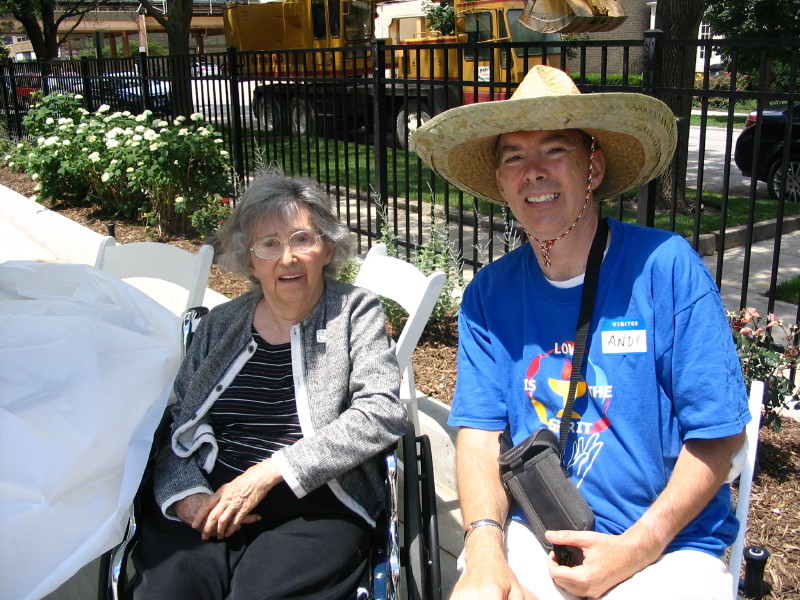 Marjorie to Unitarian Church and Mather Pavilion Patio Party -- 6/29/2008