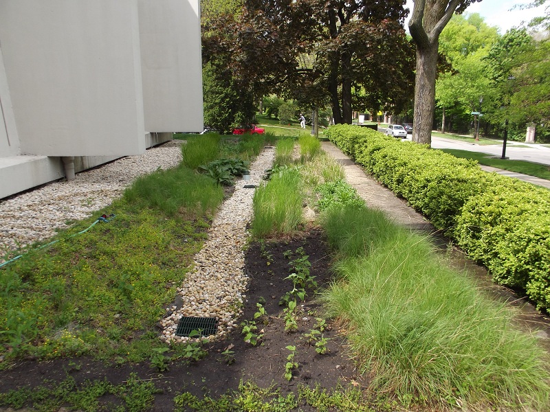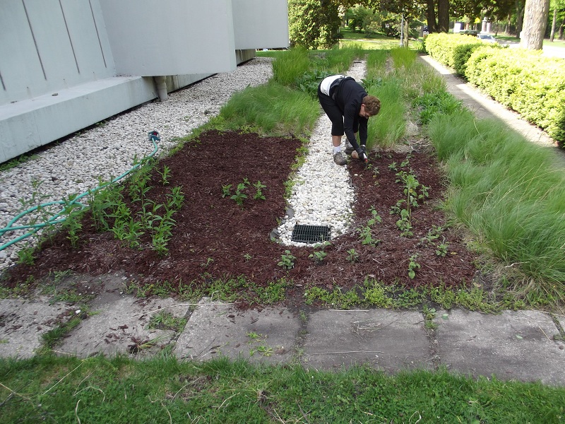 Marjorie's Rain Garden between UCE and Ridge Avenue after trimming and weeding