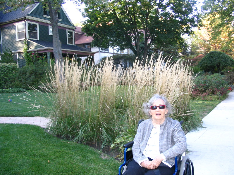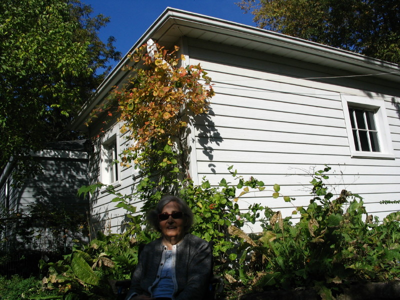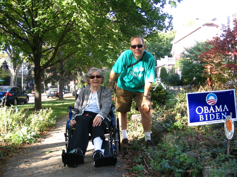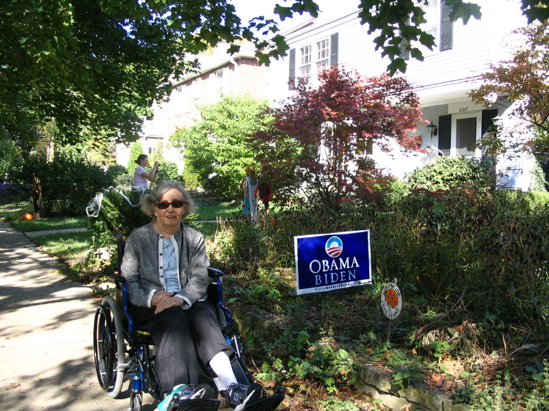 Marjorie with Obama sign in front of her house at 2763 Garrison