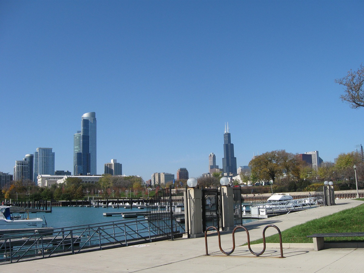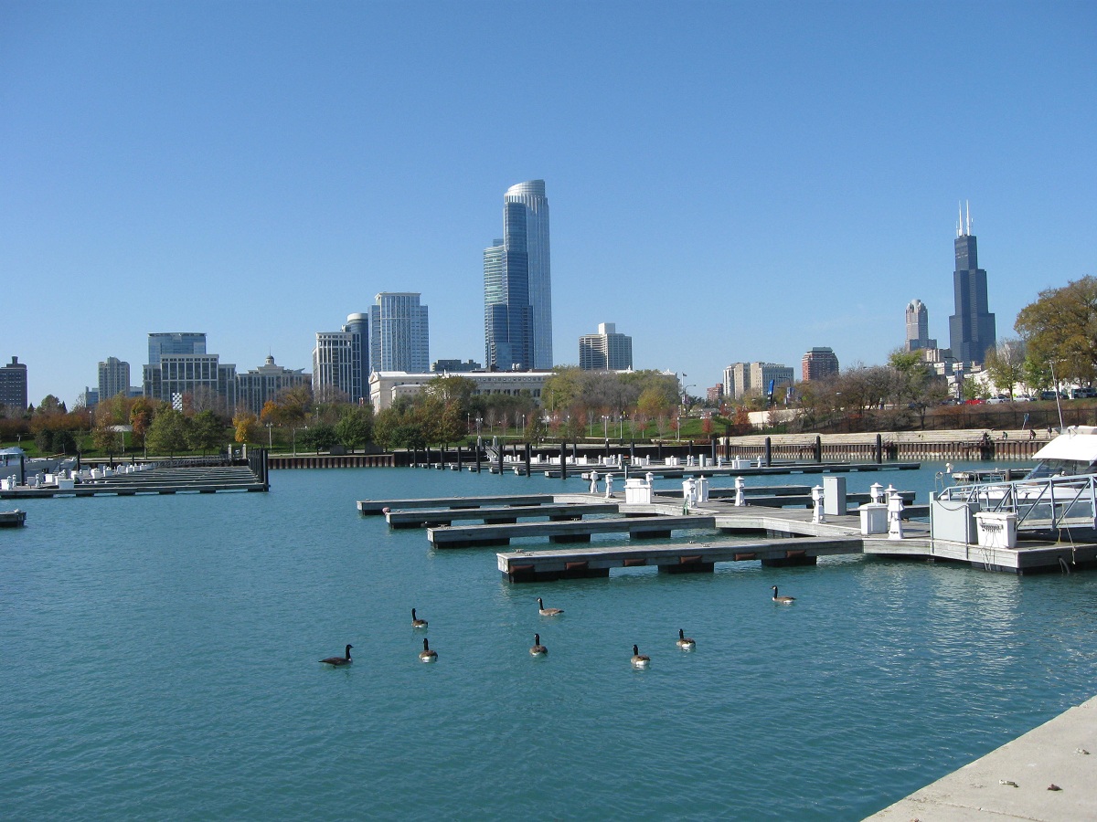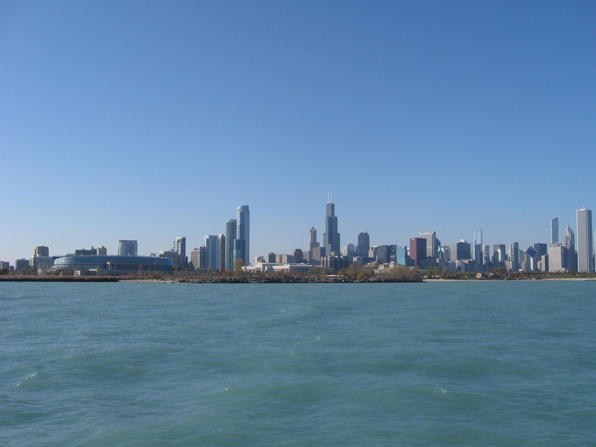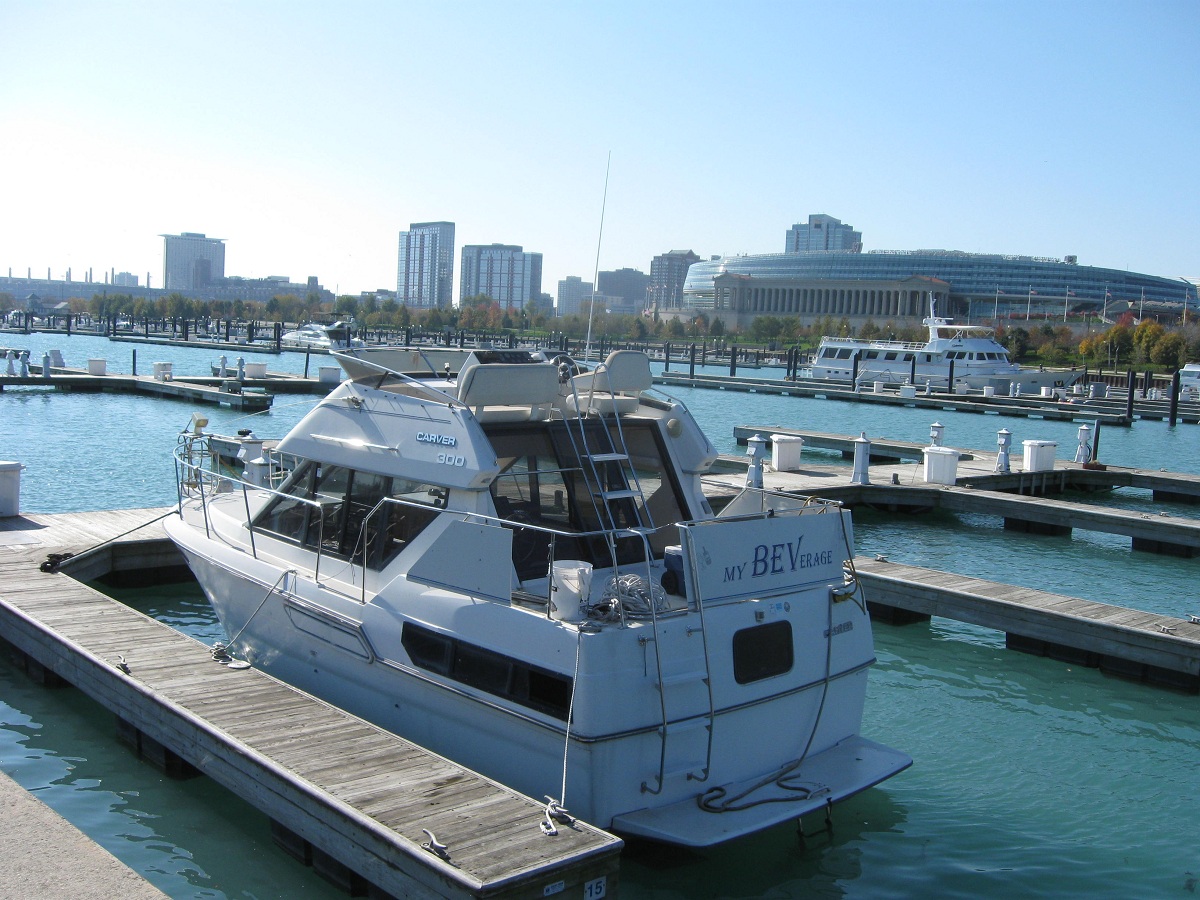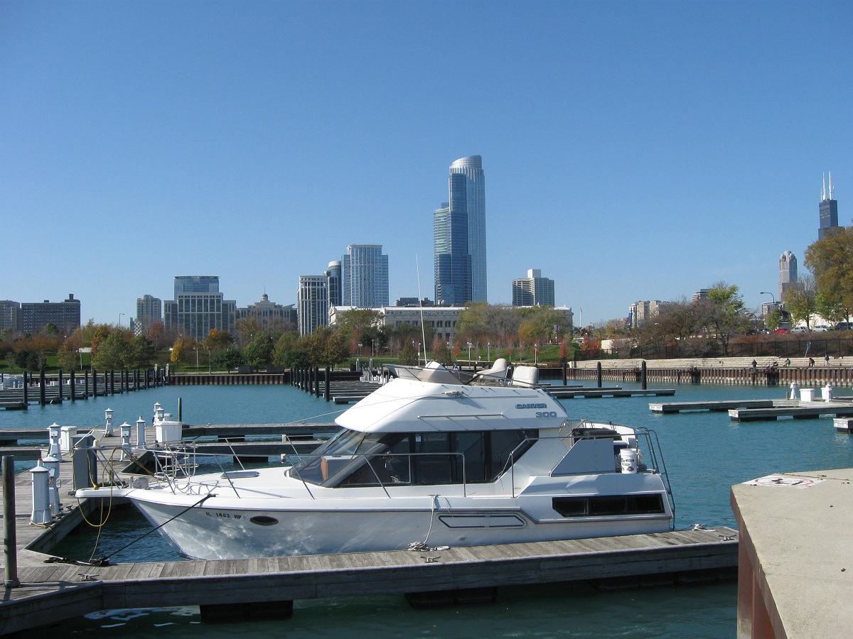 Out on Lake Michigan with Soldier Field, the Field Museum and downtown skyscrapers. My Beverage had two large motors but we could only get the port (left) one running,