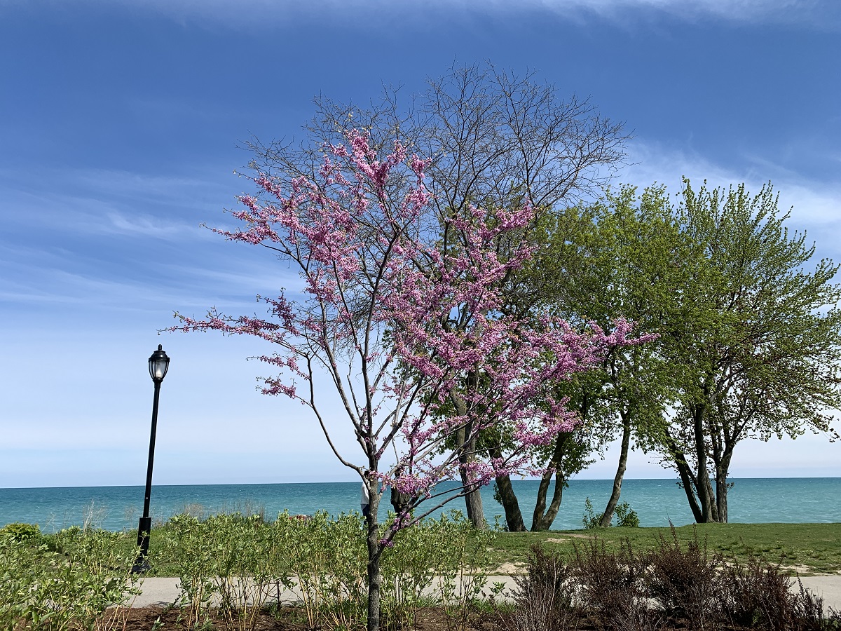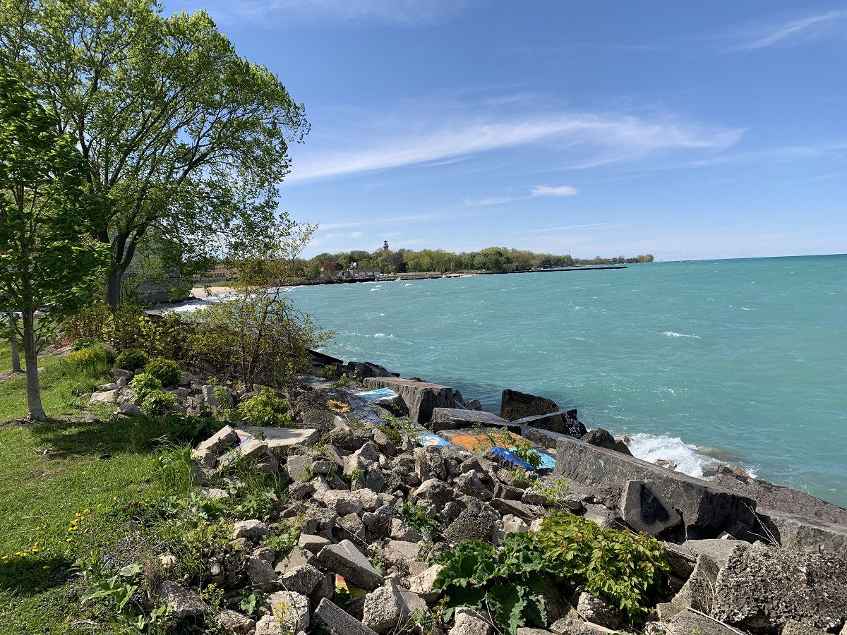 Gross Point Lighthouse showing whitecaps on Lake Michigan from strong NE wind