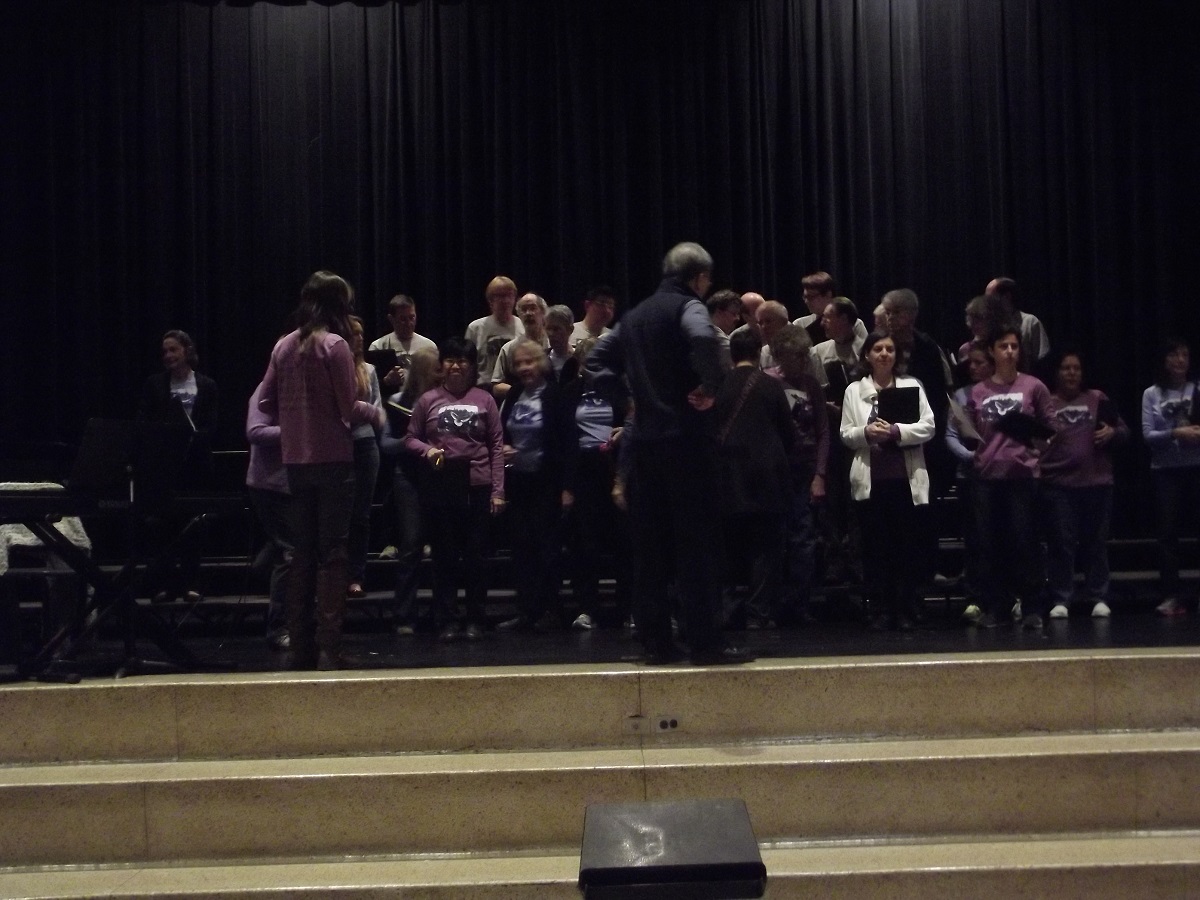 Dress rehearsal, April 2 -- Don Chen with North Shore Choral Society with their anniverwary T shirts on upper stage