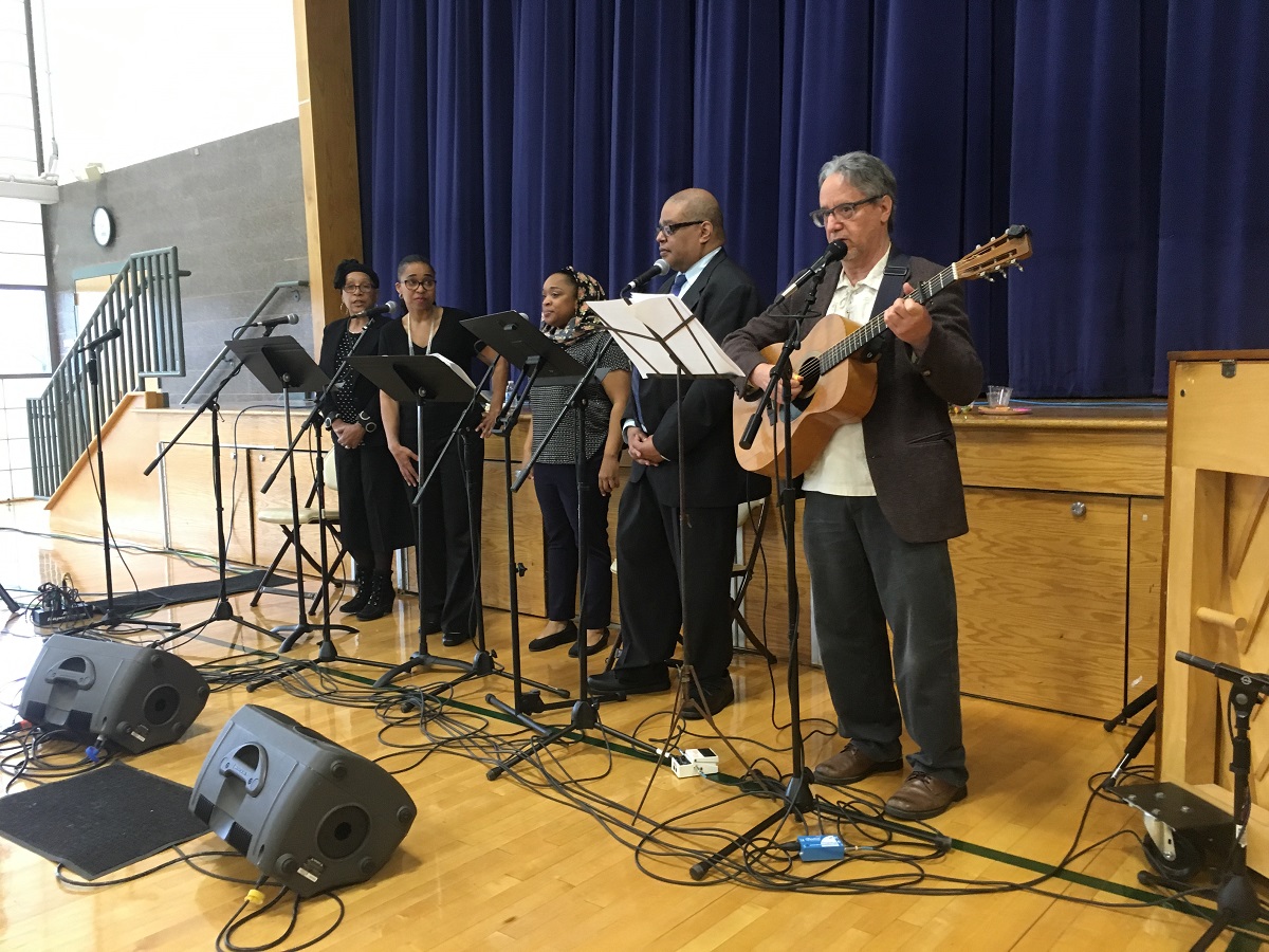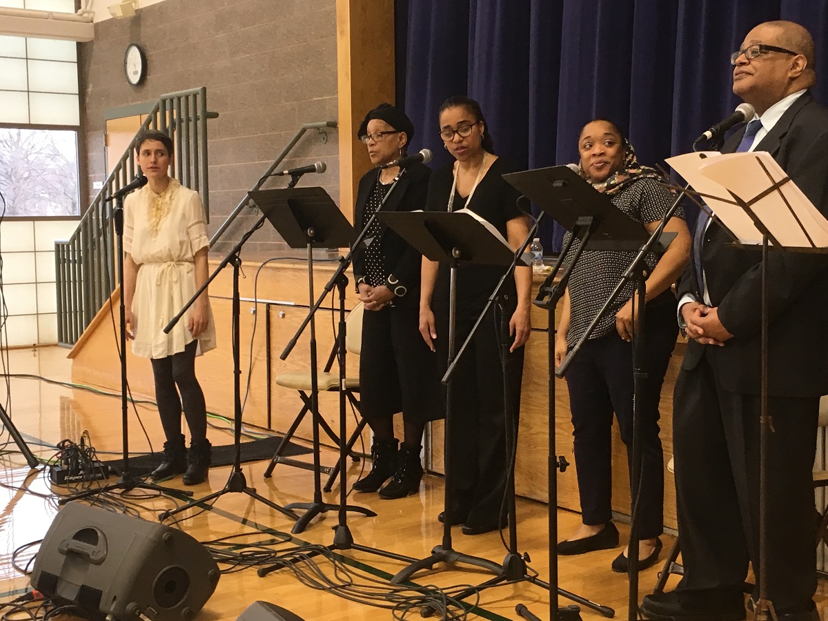 Casey Calhoun, Gloria Robinson, Tonya Peebles, Runako Soyini, and Christopher Skyles singing during second half