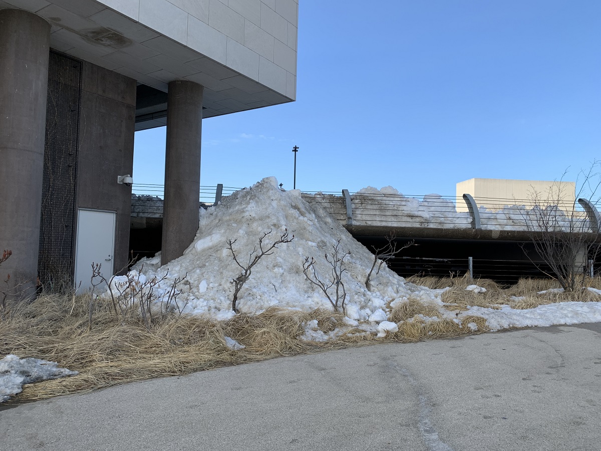Huge snowpile from plowing prking lot