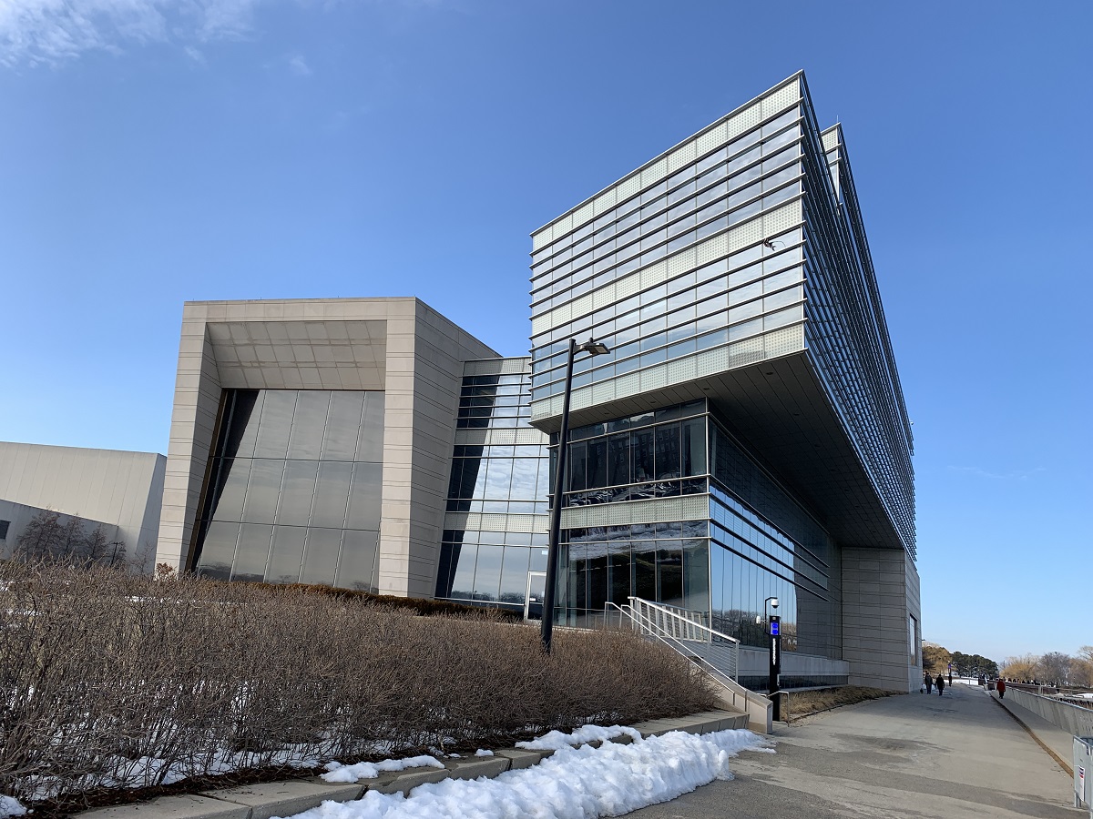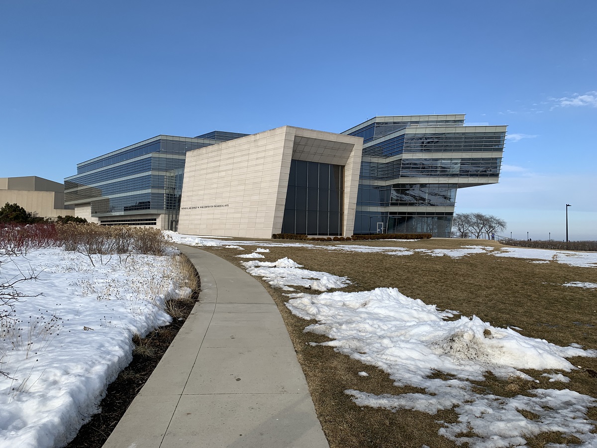 Different dramatic shot of the Patrick & Shirley Ryan Center for the Musical Arts