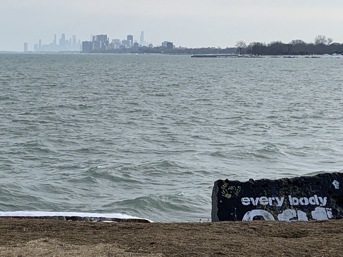 Another shot of downtown Chicgo from further east on landfill -- I got everybody on the rock