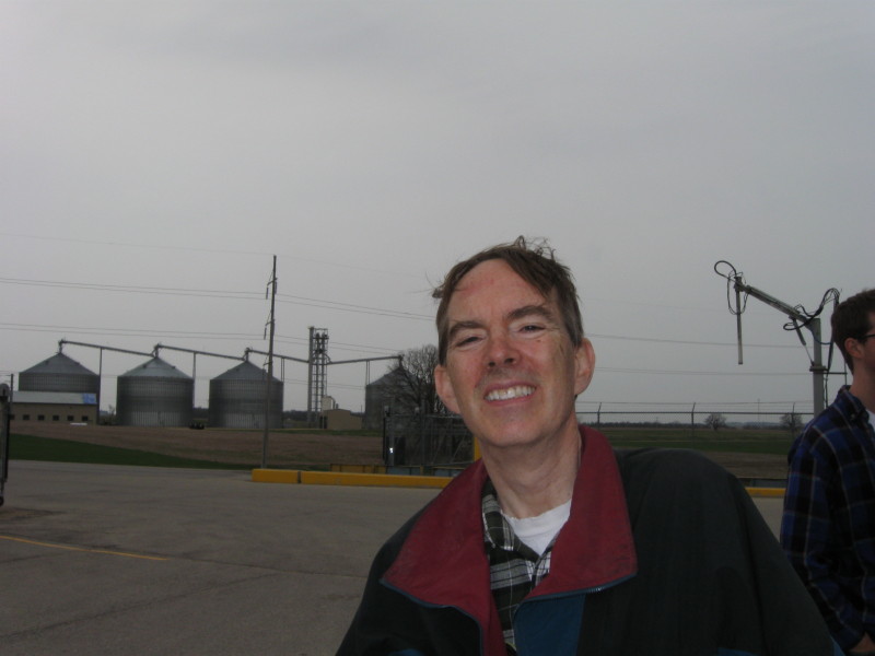 Andy with the 3 huge corn silos and a semi truck arriving with more corn