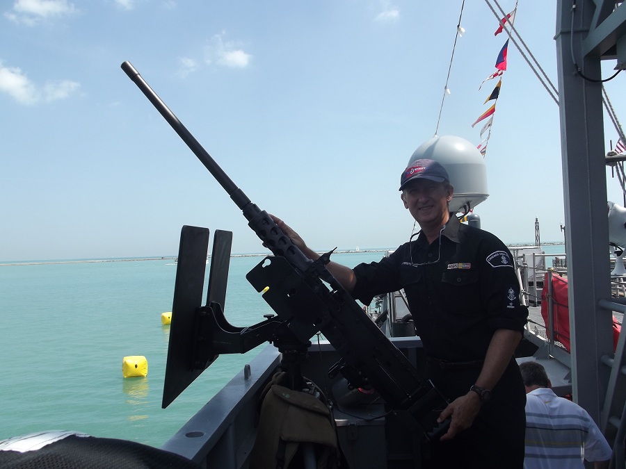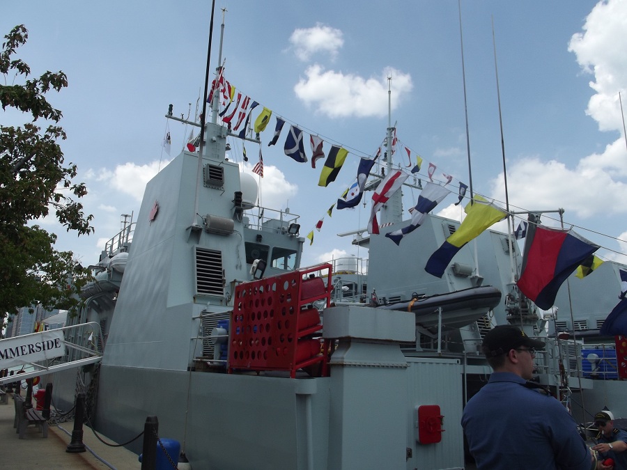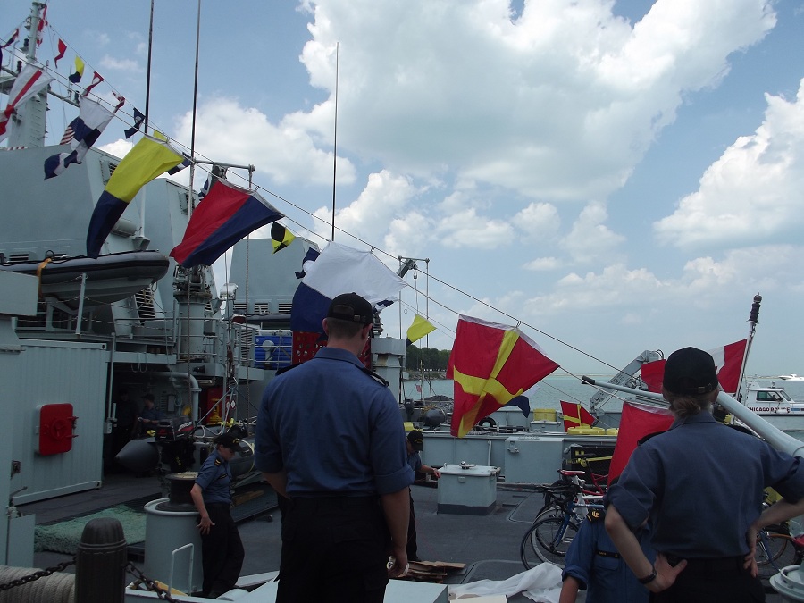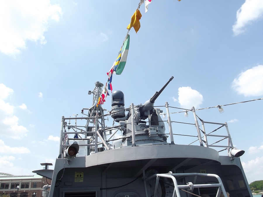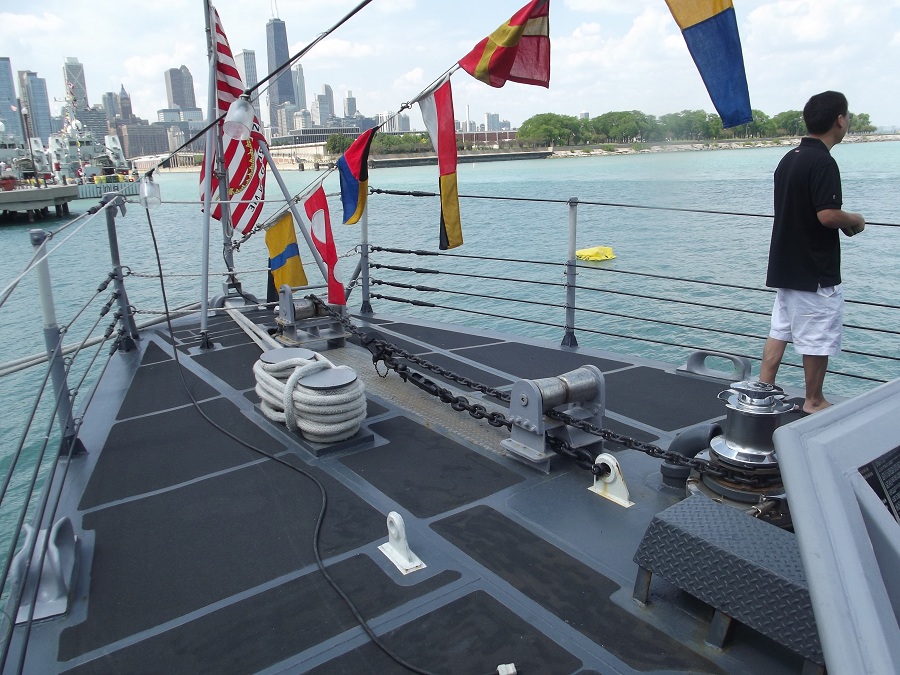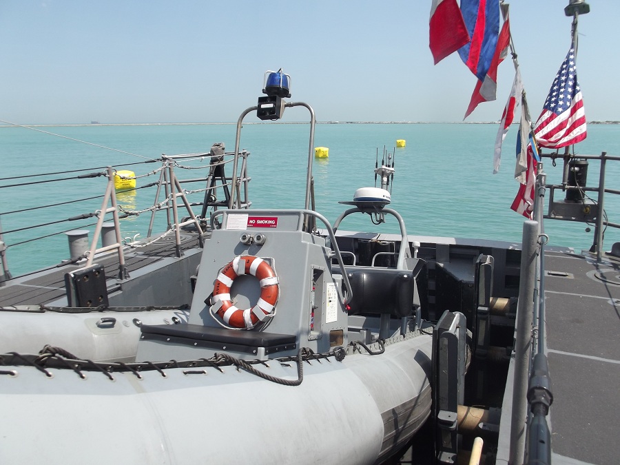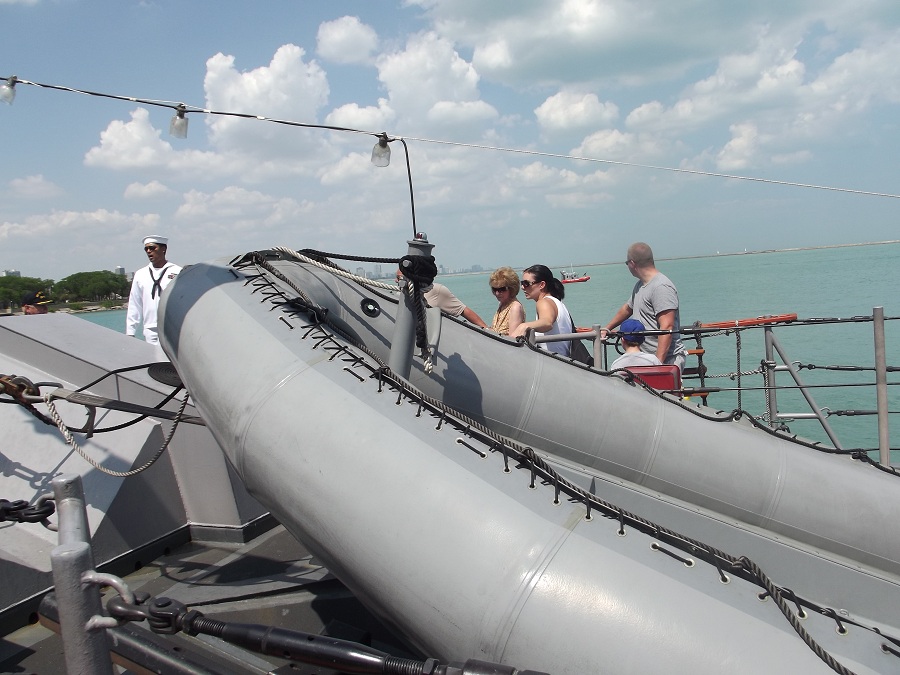 Looking back to show rear of small craft at a slant for quick emergency launching on stern
