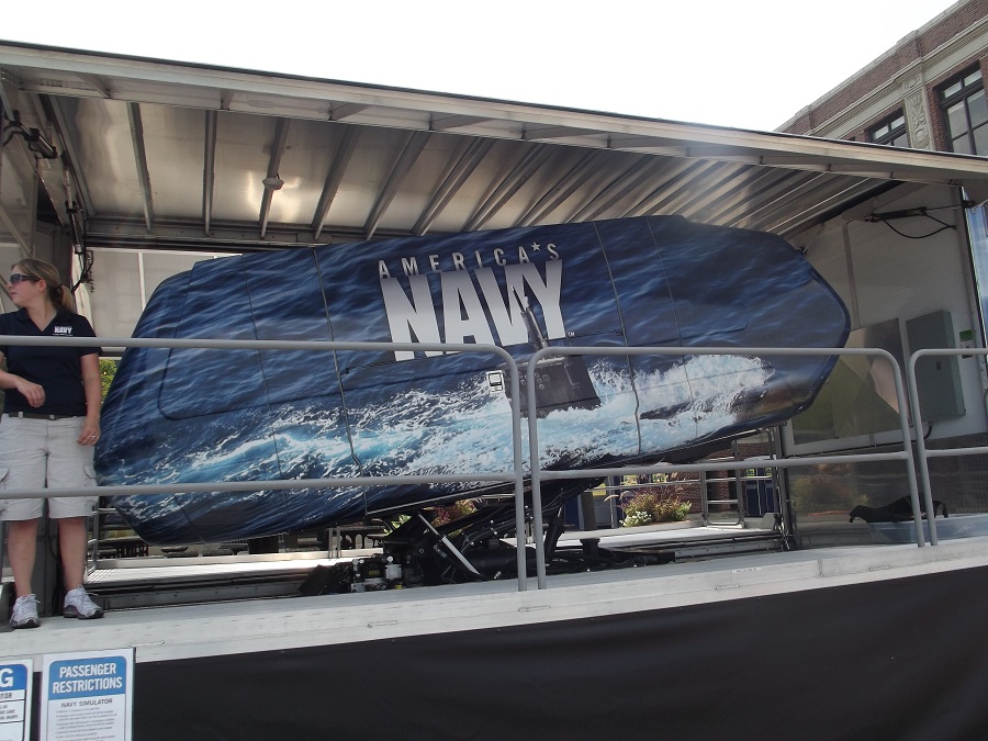 Articicial "boat" with hydrolic pistons to pitch and heave severely testing rider's suceptability to getting sea sick