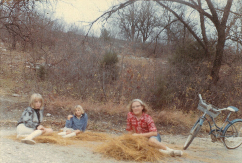 Carol, Dorothy, friend playing with the hay -- fall, 1966
