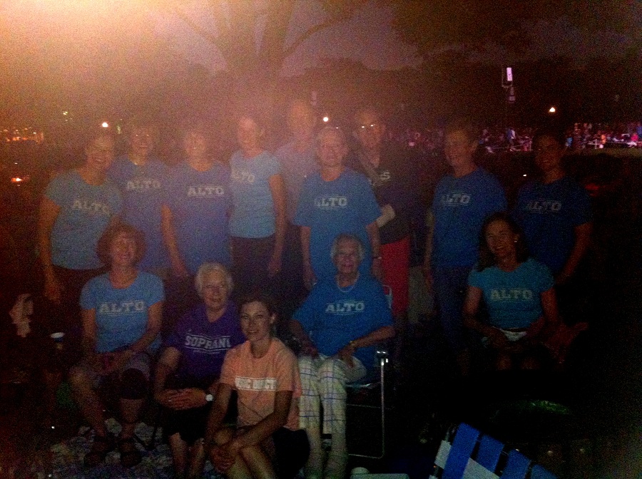 A group photo (by Erika's friend, Barb, enhanced by Andy) showing many Altos standing in back with Harry and Andy at center, with Anne and Julia sitting in the middle front