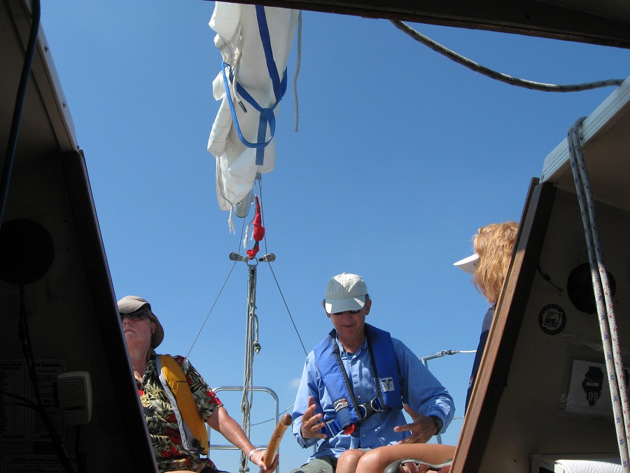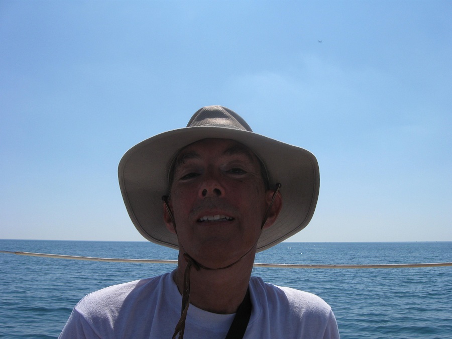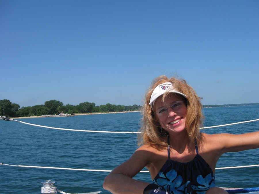 Pam on Misty Winds outside of harbor
