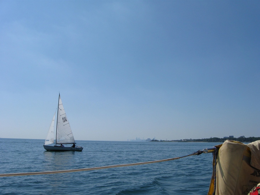 Downtown Chicago with an arrow sailboat