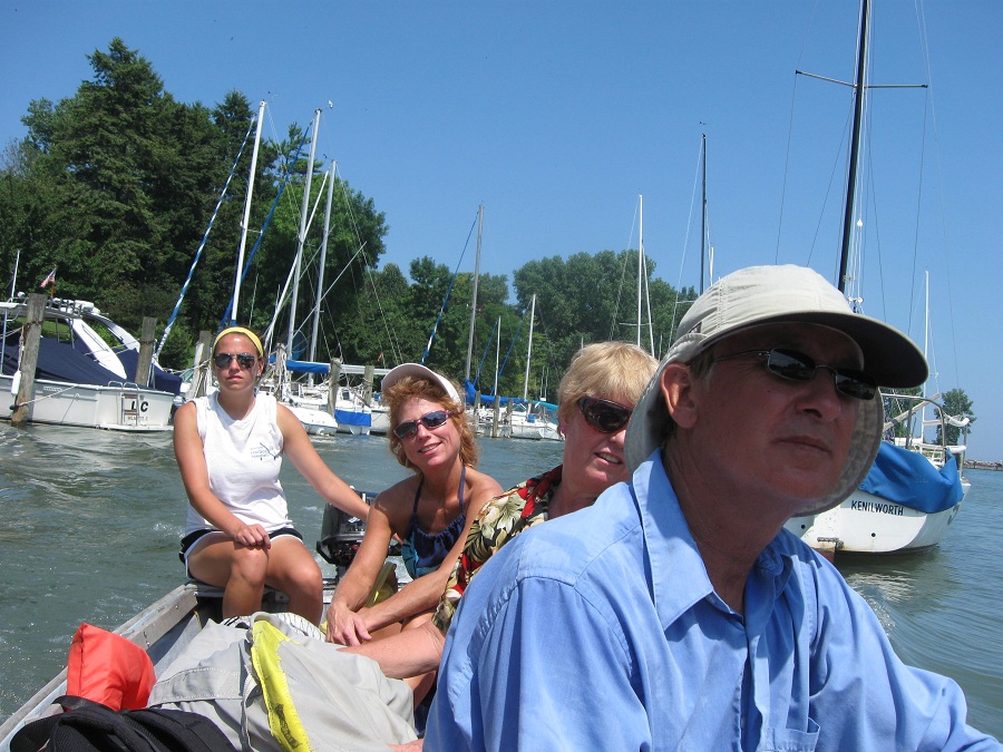Our dingy skipper,Pam, Dale, and Bill with all our stuff on the way from Misty Winds to harbor dock