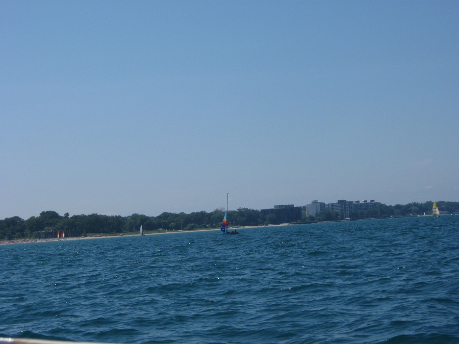 A few boats sailing near shore, Wilmette's "No-man's-land" condo hgh irises