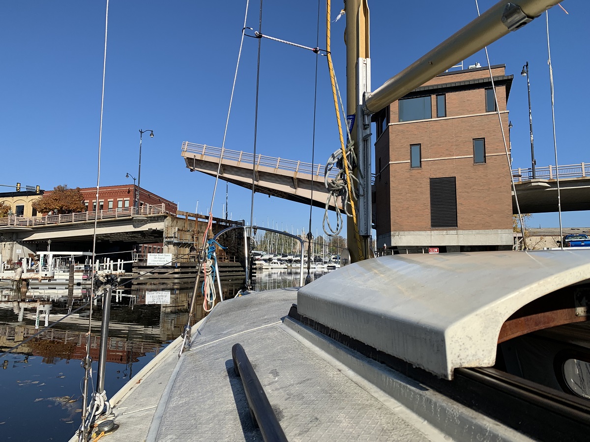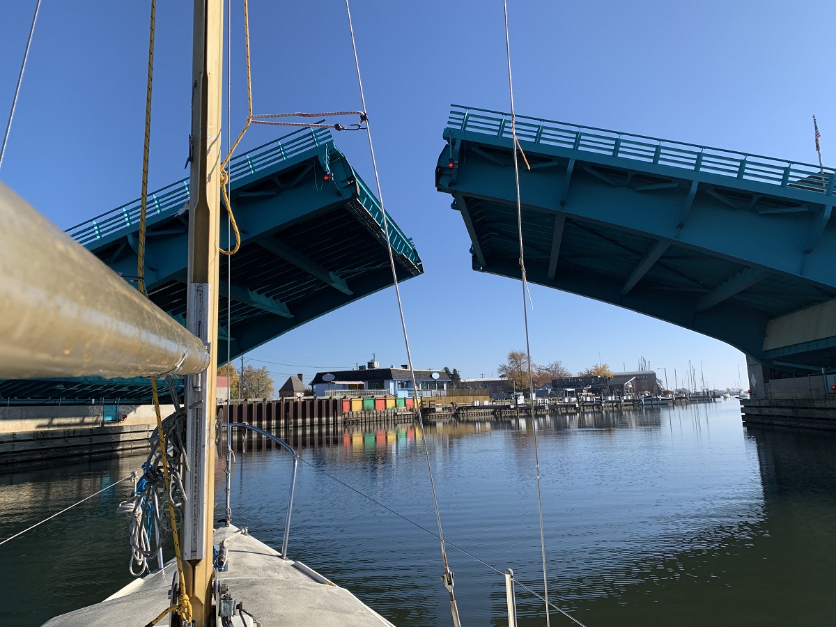 Inner River looking southwest of Sherwin's boat at perfect reflection of trees and other boats