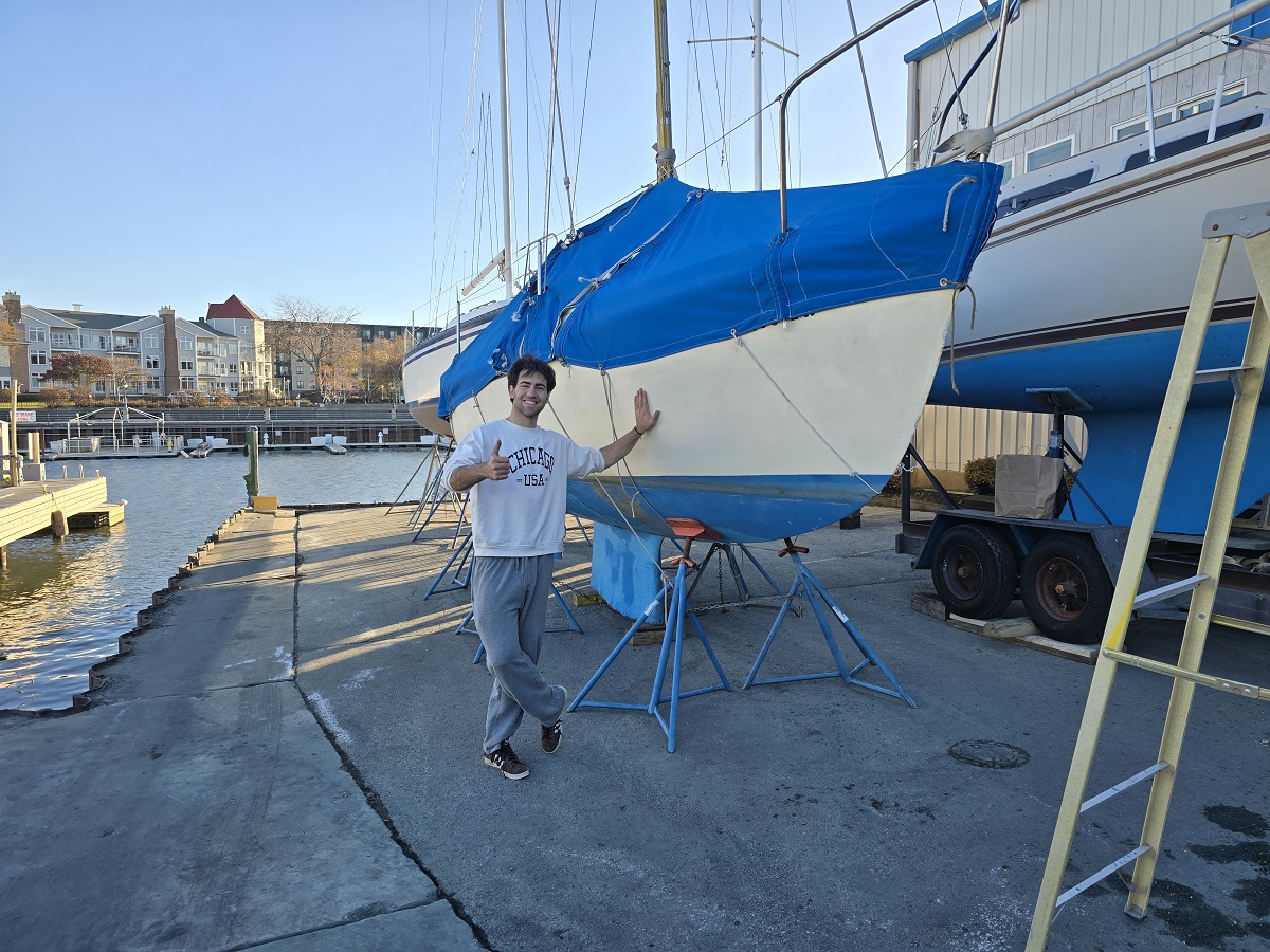 Sherwin with sailboat after final blue cover is on 11/15/2025