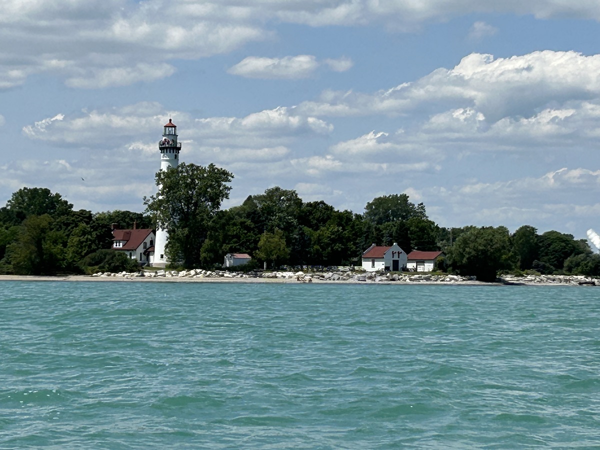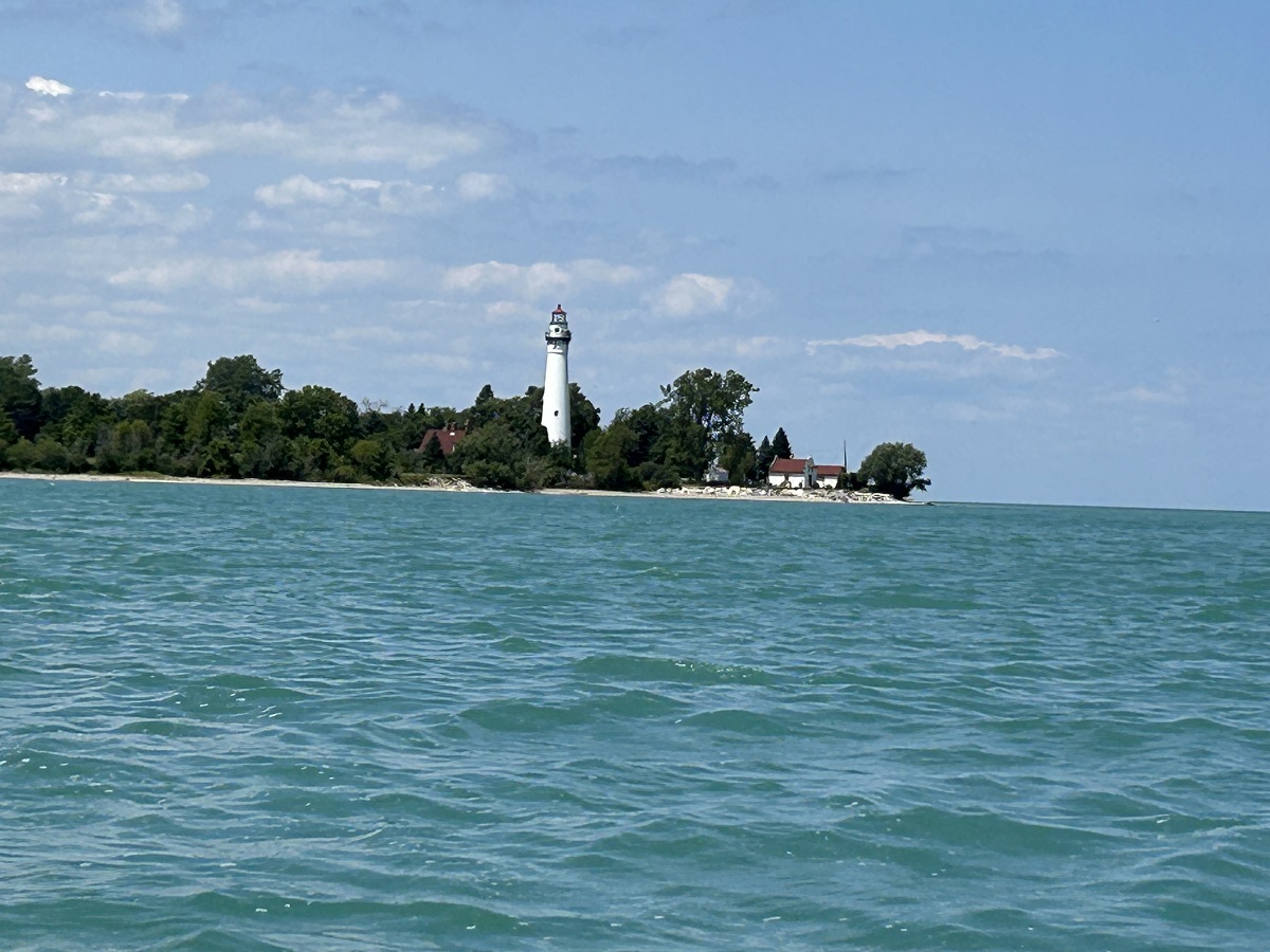 Shore past lighthouse north toward Milwaukee