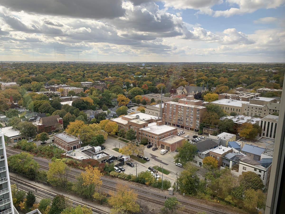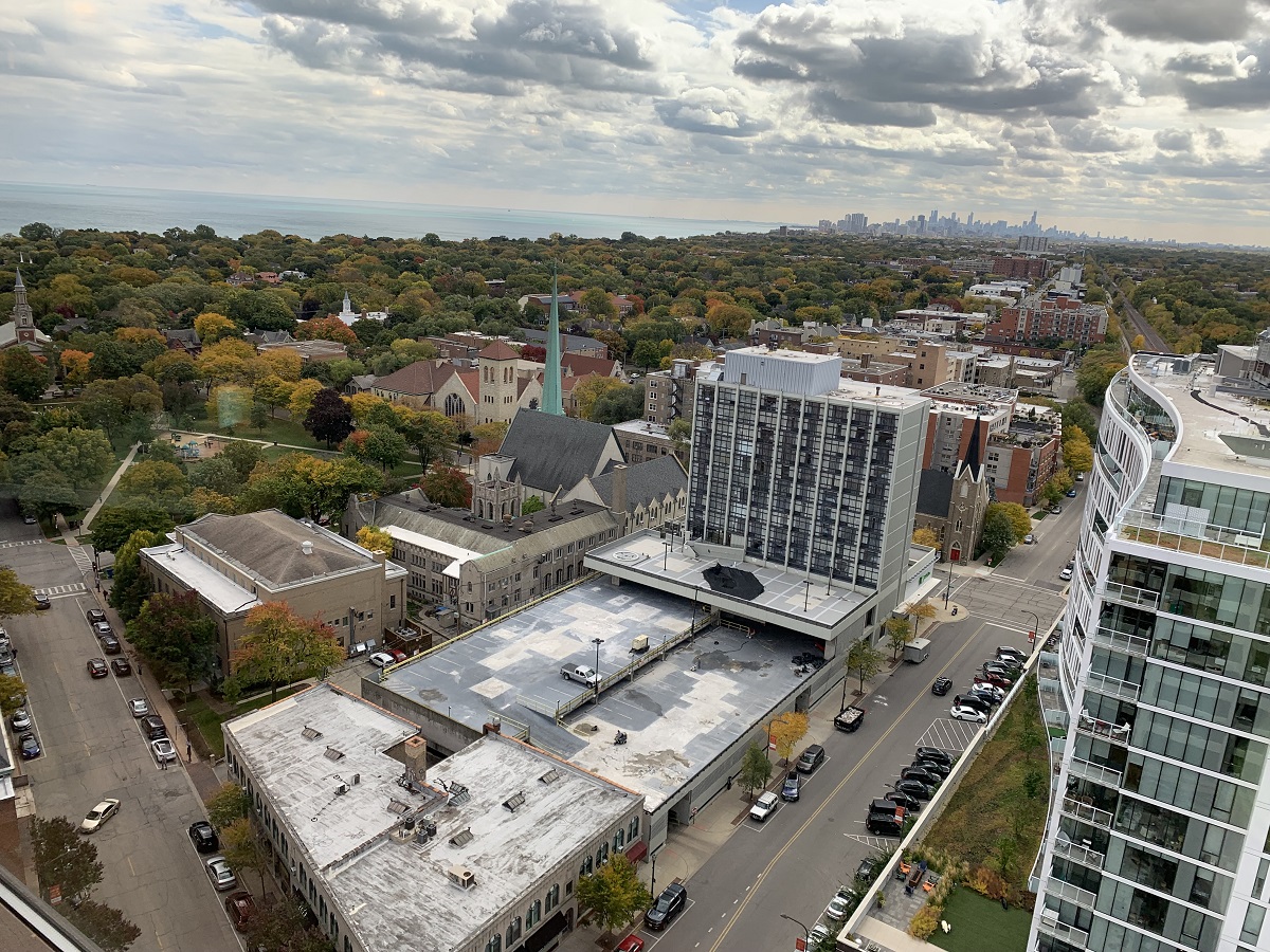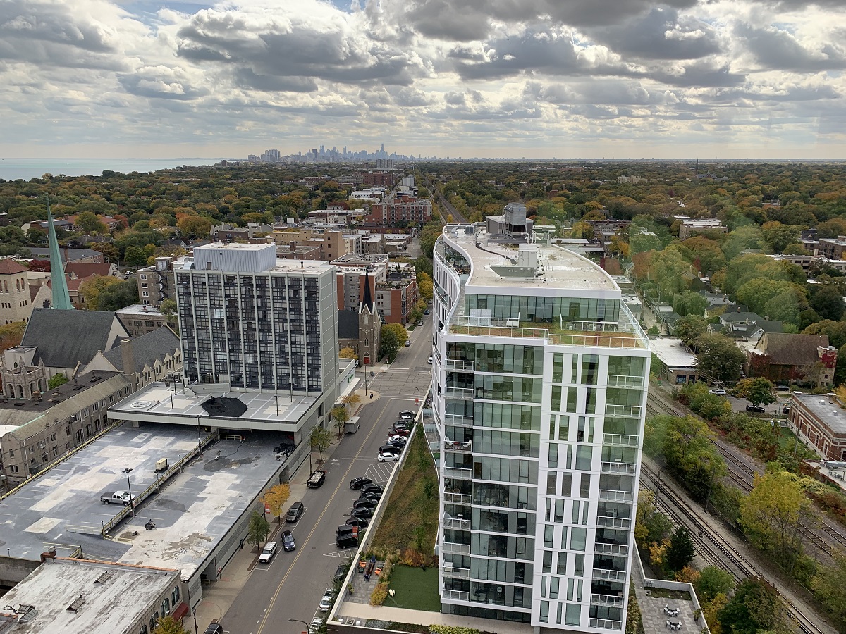 Great view to south Chicago skyline over new Albion building