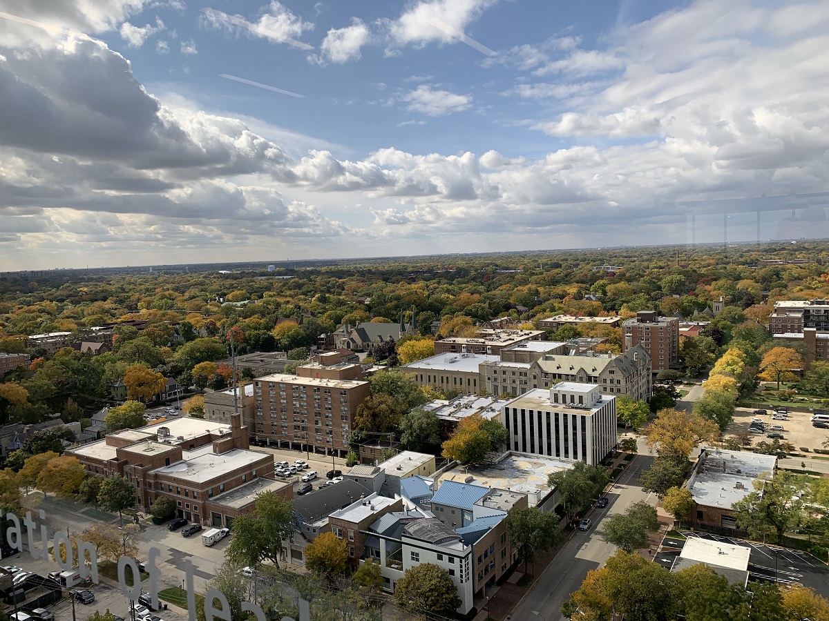 View to southeast over Chicago and Lake Michigan