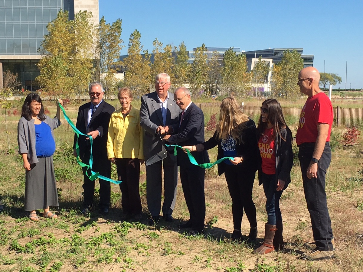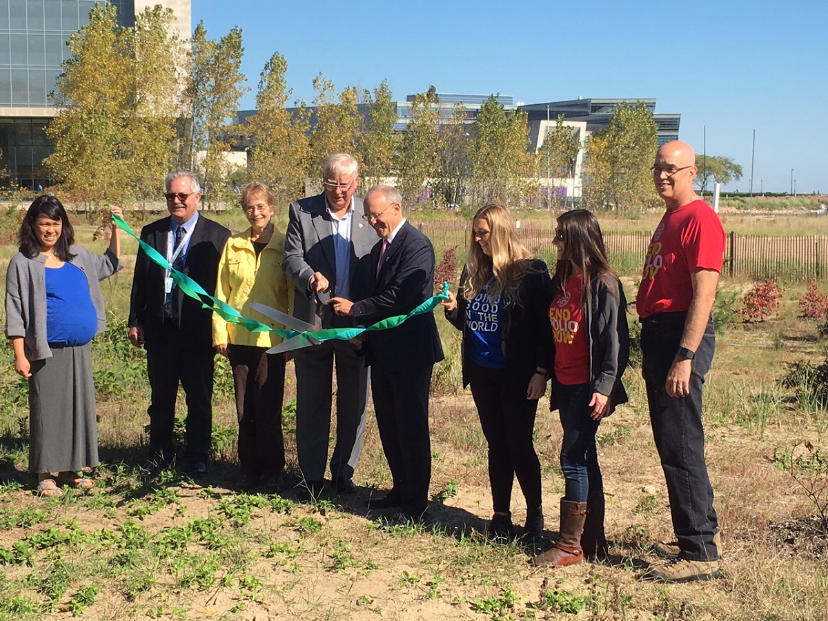 For the ribbon cutting: 2 from Rotary, Representative Robyn Gabel, Rotary President Riseley, Mayor Hagerty, and 3 more from Rotary